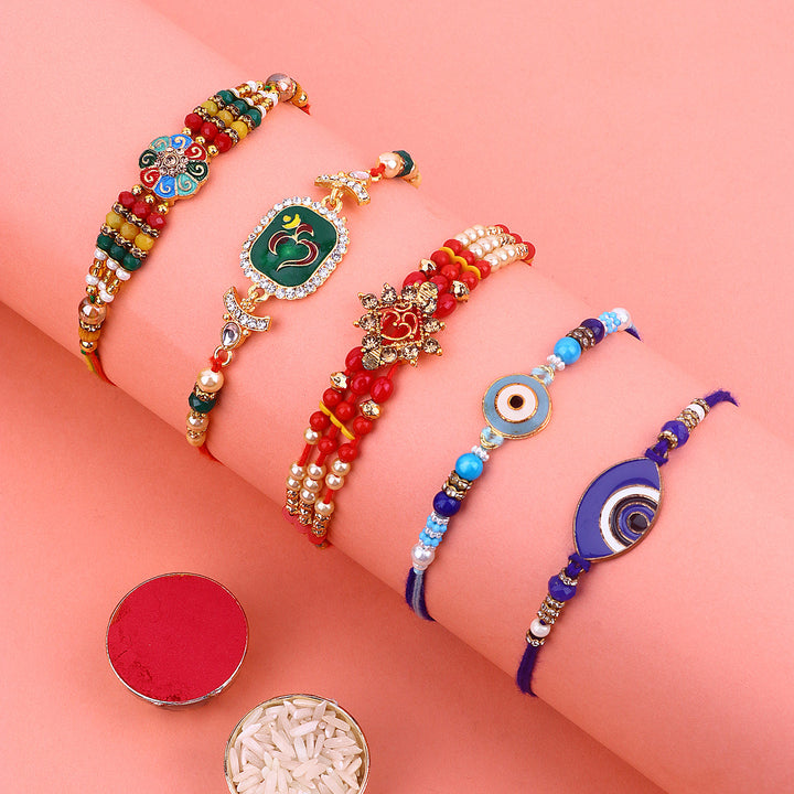 Satvik 5 Pc Designer Rakhi Set for Complete Family
