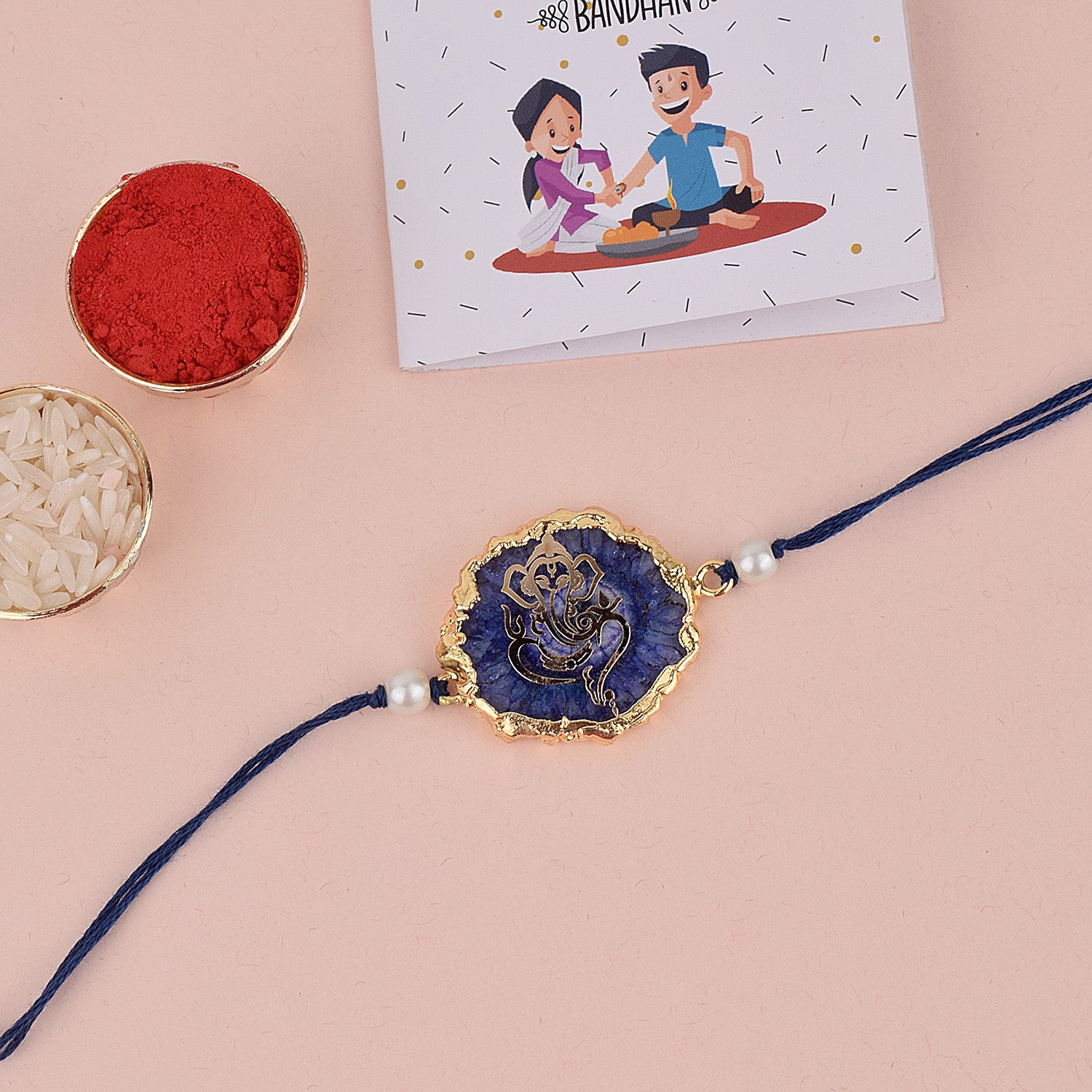 • Package: 1 Pc Agate Stone Ganesha Rakhi, Roli Akshat, Greeting CardΒ