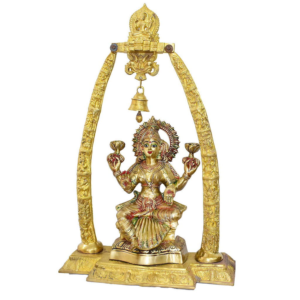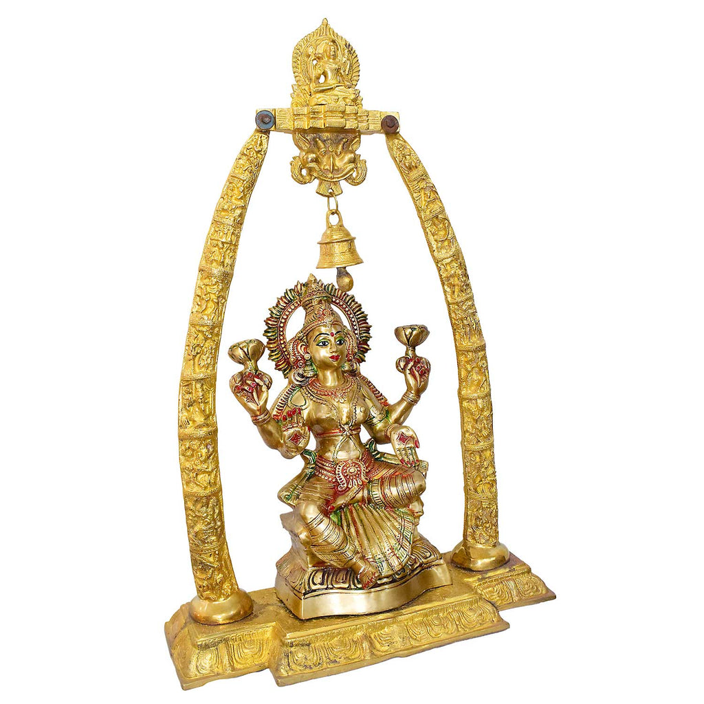 Buy Online | Brass Lakshmi Idol with Arch & Bell | Satvikstore.in – satvikstore.in
