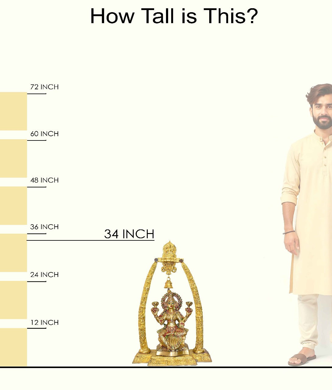 • About the Product: 34 Inch Dhan Lakshmi on Mandap with Ghanti - Kanchan Kamala Devi Brass Murti