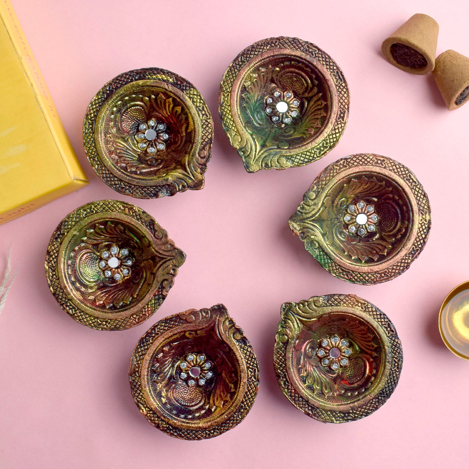 Earthen Elegance Traditional Clay Diyas for a Bright Diwali Set of 6