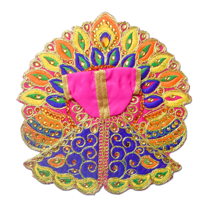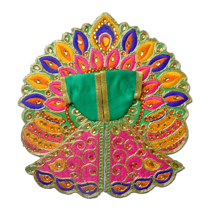 Wrap your divine Laddu Gopal in radiant elegance with this stunning dress featuring colourful matka and leaf embroidery highlighted with sparkling stonework. Each piece is a unique creation, crafted in assorted vibrant shades to add a festive glow to your pooja space.