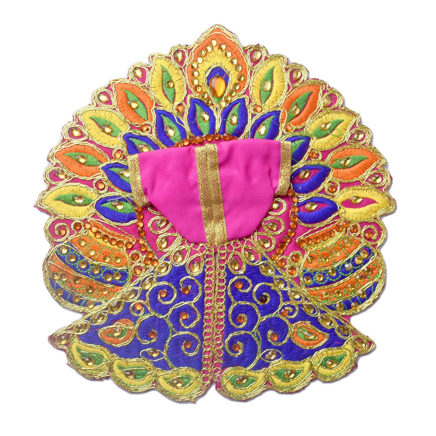 The fine embroidery and glistening stones infuse the outfit with divine charm, making it perfect for Janmashtami, special poojas, or daily darshan. Available in sizes 1, 2, 4, 5, and 6, this exquisite poshak elevates your deity’s look with traditional artistry and vibrant beauty.