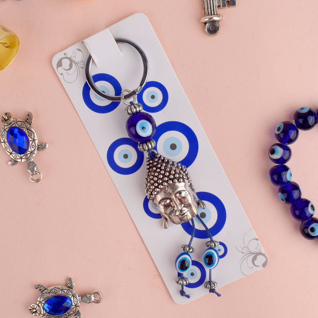Alluring Silver Plated Buddha Keychain with Evil Eye | Buy Online | Satvikstore.in – satvikstore.in