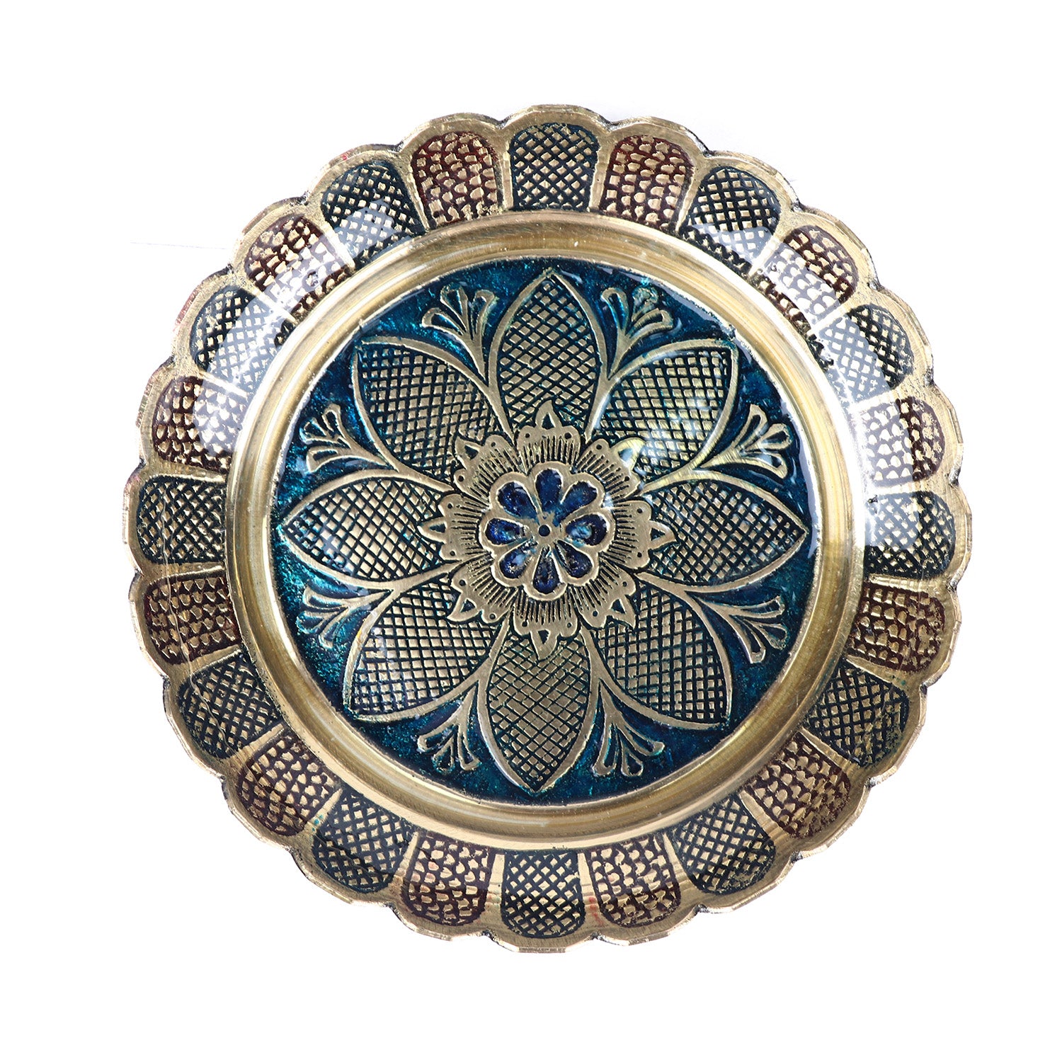Brass Colored Turtle with Nakashi Plate | Brass Turtle with Nakashi Tray | Blue Nakashi Art Turtle | Feng Shui Turtle with Nakashi Plate | Turtle for Prosperity and Protection | Brass Turtle for Good Luck | Nakashi Plate Decor | Vastu Turtle with Plate | Blue Feng Shui Turtle | Handmade Brass Turtle | satvikstore turtle