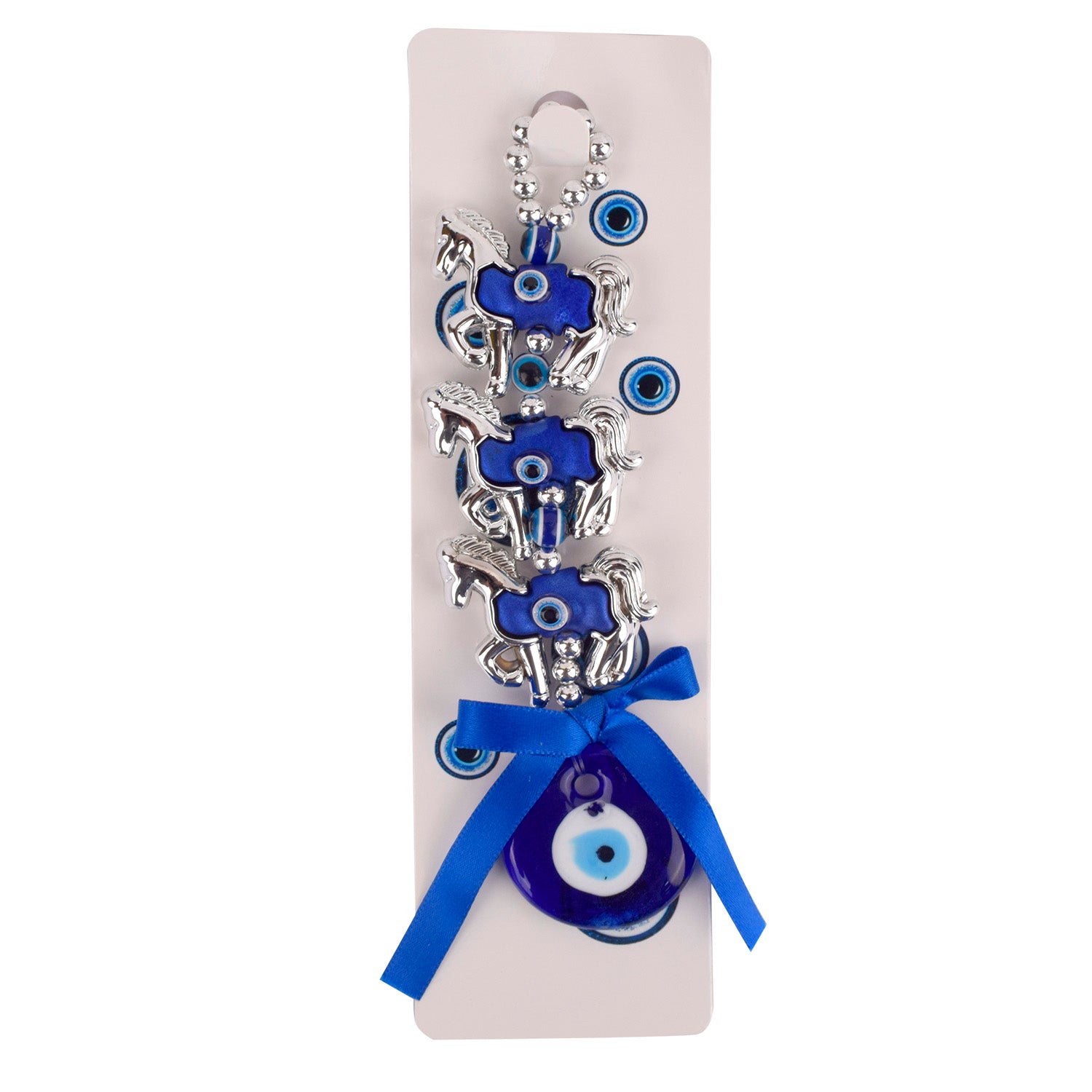 Material: High-Quality Glass Evil Eye, Thread, 3 Horse Charms