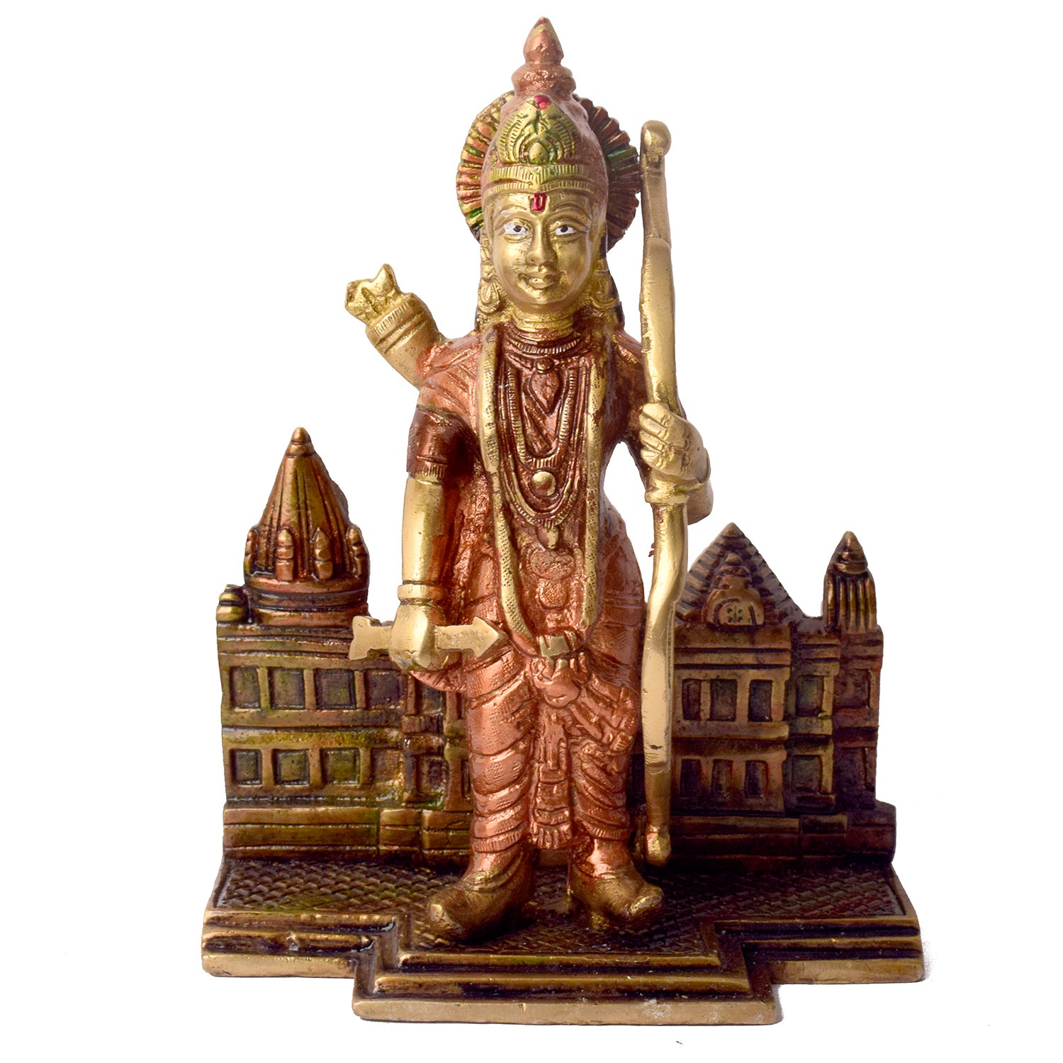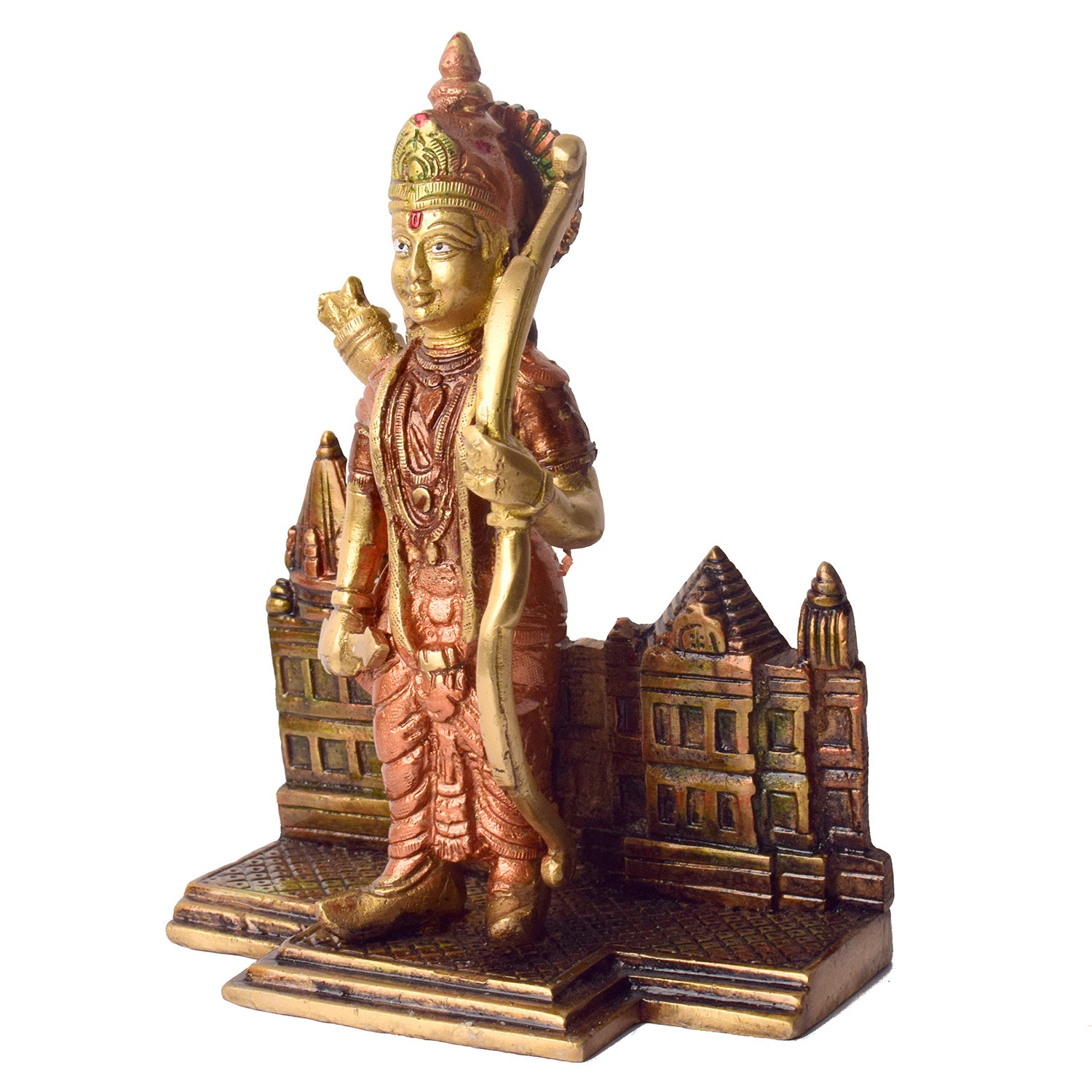 Brass Ram Mandir Statue | Lord Ram Brass Idol | Handmade Brass Ram Murti | Antique Finish Ram Mandir | Victorious Ram Temple Statue | Best Gift for Housewarming | Brass Idol | Exclusive Brass Ram Mandir |