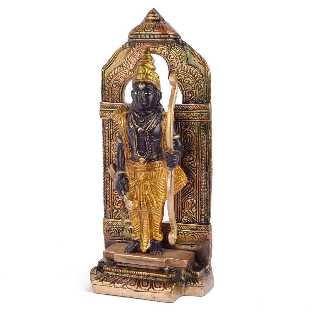 Antique Finish Ram Idol | Puja Room Decor | Brass Ram Idol with Bow | Handcrafted Ram with Bow | Brass Standing Ram Statue | Brass Gift Item for Housewarming | Premium Brass Idol for Sale | Brass Idol |