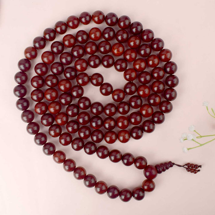 Red Chandan Mala | 18mm Sandalwood Mala | Lal Chandan Mala 108+1 Beads | Original Red Sandalwood Mala | Red Chandan Japa Mala | Chandan Mala for Meditation | Spiritual Chandan Mala | Red Chandan Beads Mala | Chandan Mala for Pooja | Handmade Red Sandalwood Mala