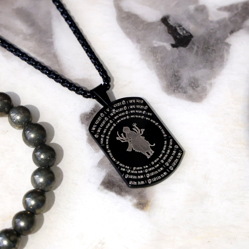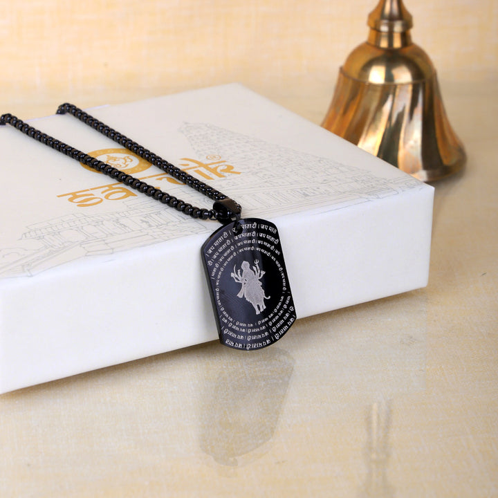About Product: The Shree Durga Maa MicroCarved Black Pendant is a finely crafted devotional accessory that showcases the divine presence of Maa Durga through intricate micro-carved detailing. The precision engraving captures the powerful aura of the Goddess, symbolizing strength, protection, and victory of good over evil, all set against an elegant black finish.