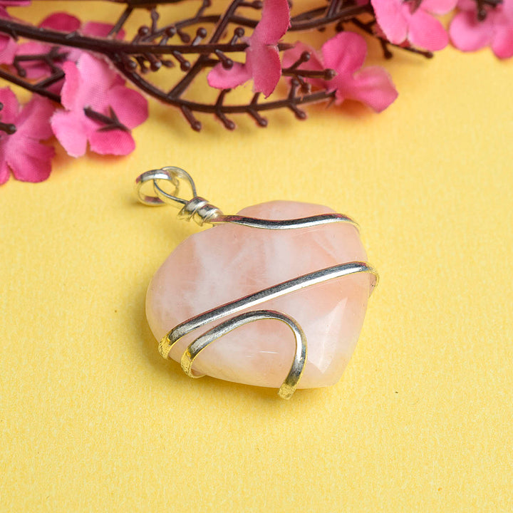 Rose Quartz Pendant Heart Wire Wrapped Crystal Stone Pendant | Satvik – satvikstore.in