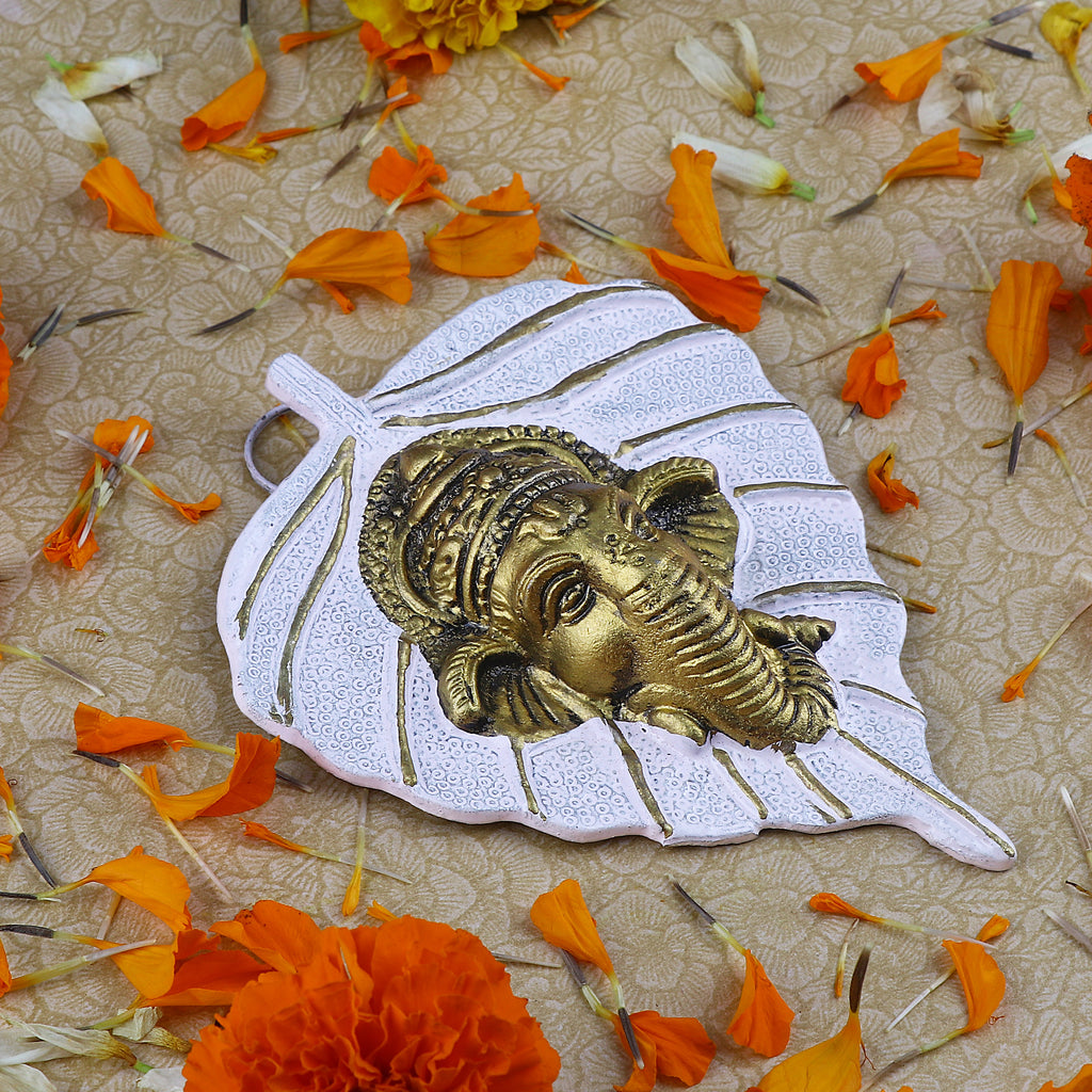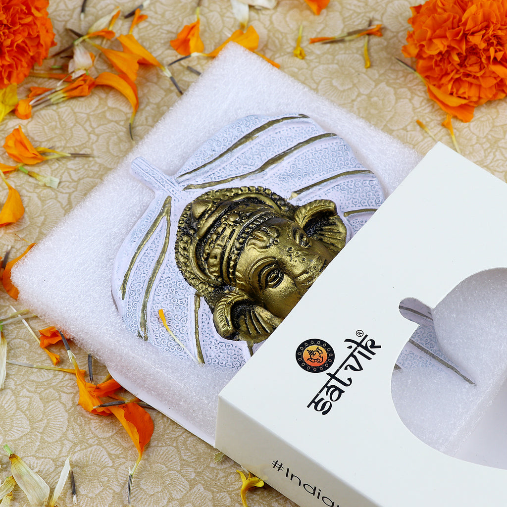 Buy Lord Ganesh Face on Leaf Patta Wall Hanging White | Satvikstore.in – satvikstore.in