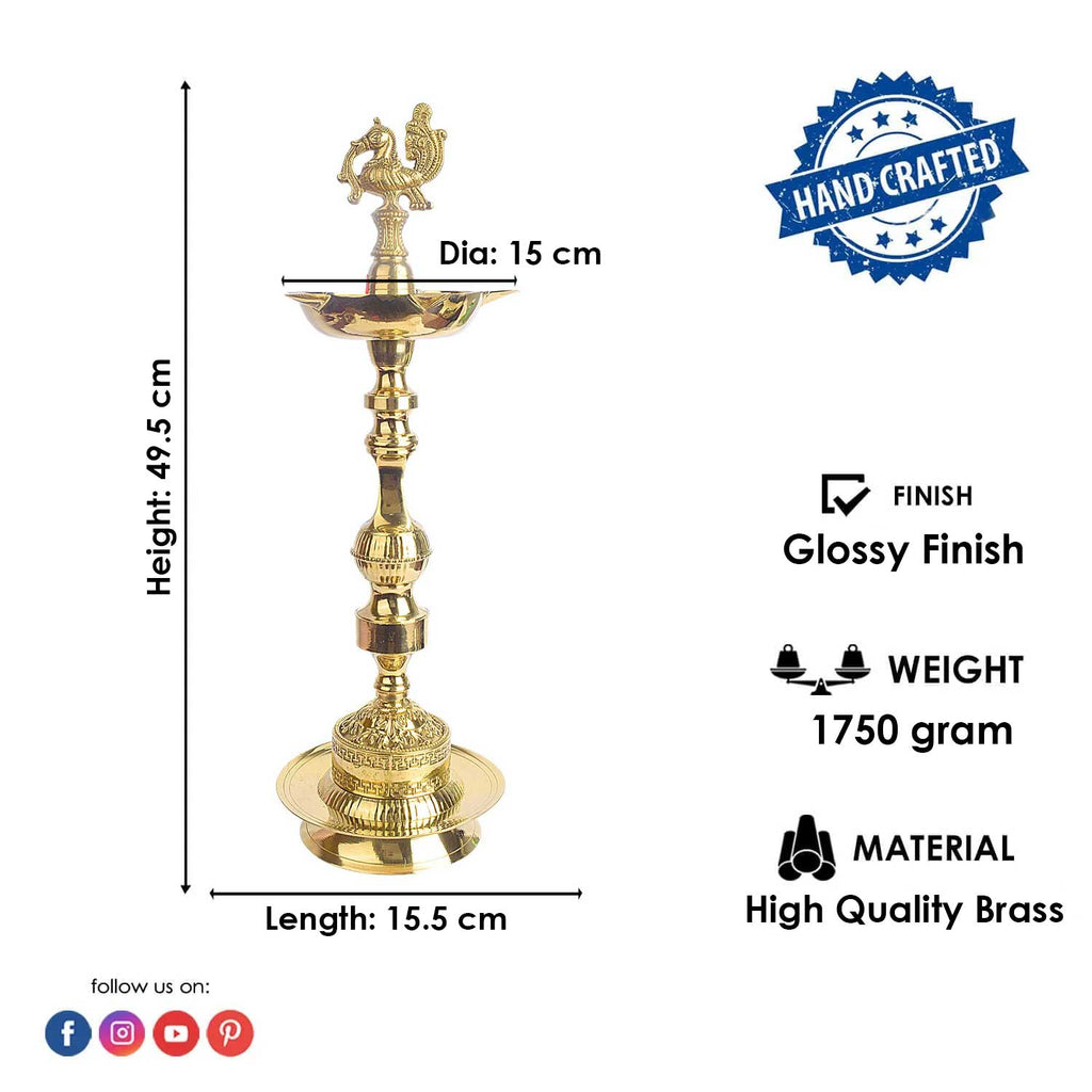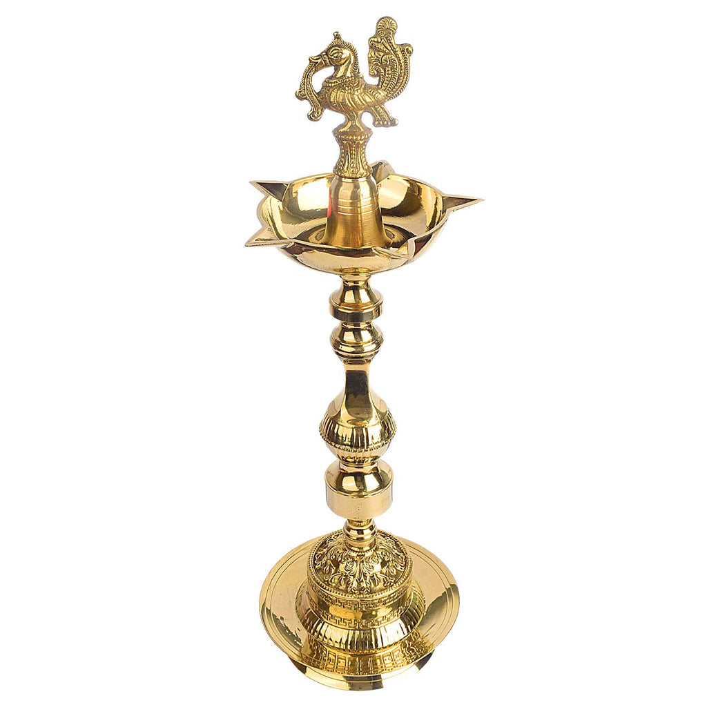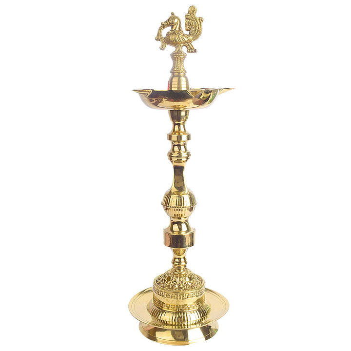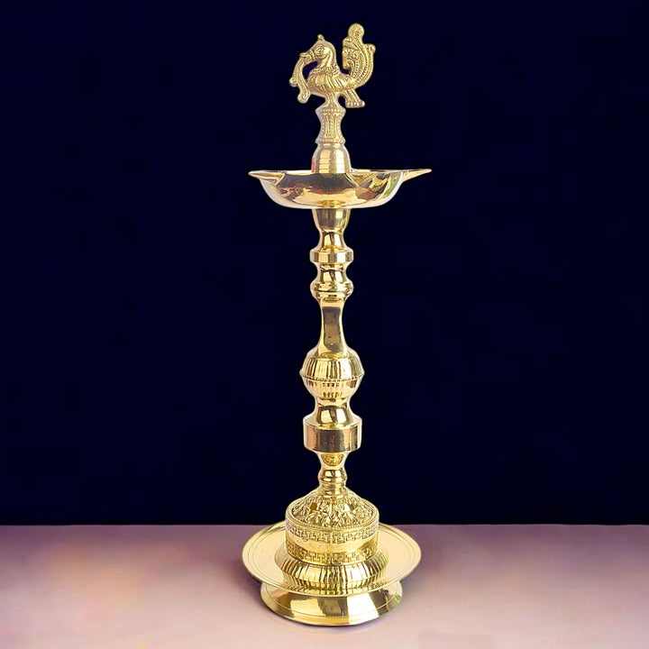 19 Inch Embossed Brass Peacock Kerala Samai Diya | Brass Peacock Diya | Kerala Samai Deepam | Embossed Brass Diya | Traditional Kerala Diya | Brass Oil Lamp | Spiritual Brass Lamp | Pooja Diya | Peacock Design Diya | Kerala Temple Lamp | Indian Ritual Lamp | Brass Diya for Pooja