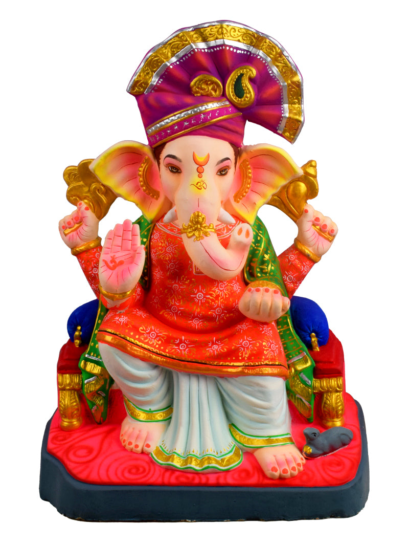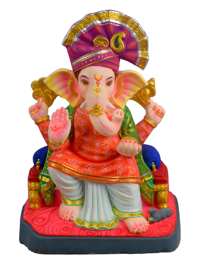 These True eco friendly Ganpati idols are also available in multi-colour options in red, white, yellow, green, white, pink, purple, blue, orange, gold, and other vibrant colours at the best price compared to the market online and come in beautiful packaging to gift to your relatives and friends. Eco Friendly Ganesha Idols are available in the Latest and Designer Collection of 2024 with Pagdi Ganesha, Mukut Ganpati, Ganeha Sitting in Chair Singashan, Bal Ganesha, Standing Ganesha, Lal Bagh ka Raja Ganpati Murti, Lalbaugcha Raja Ganesha Idol, and Many More.
