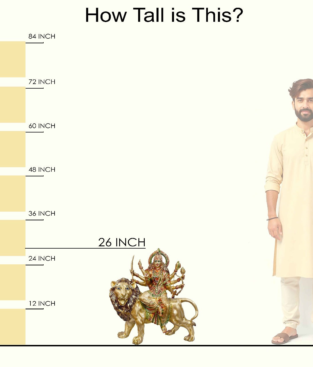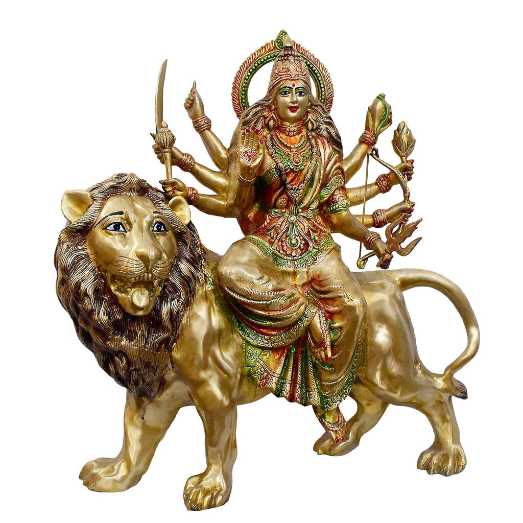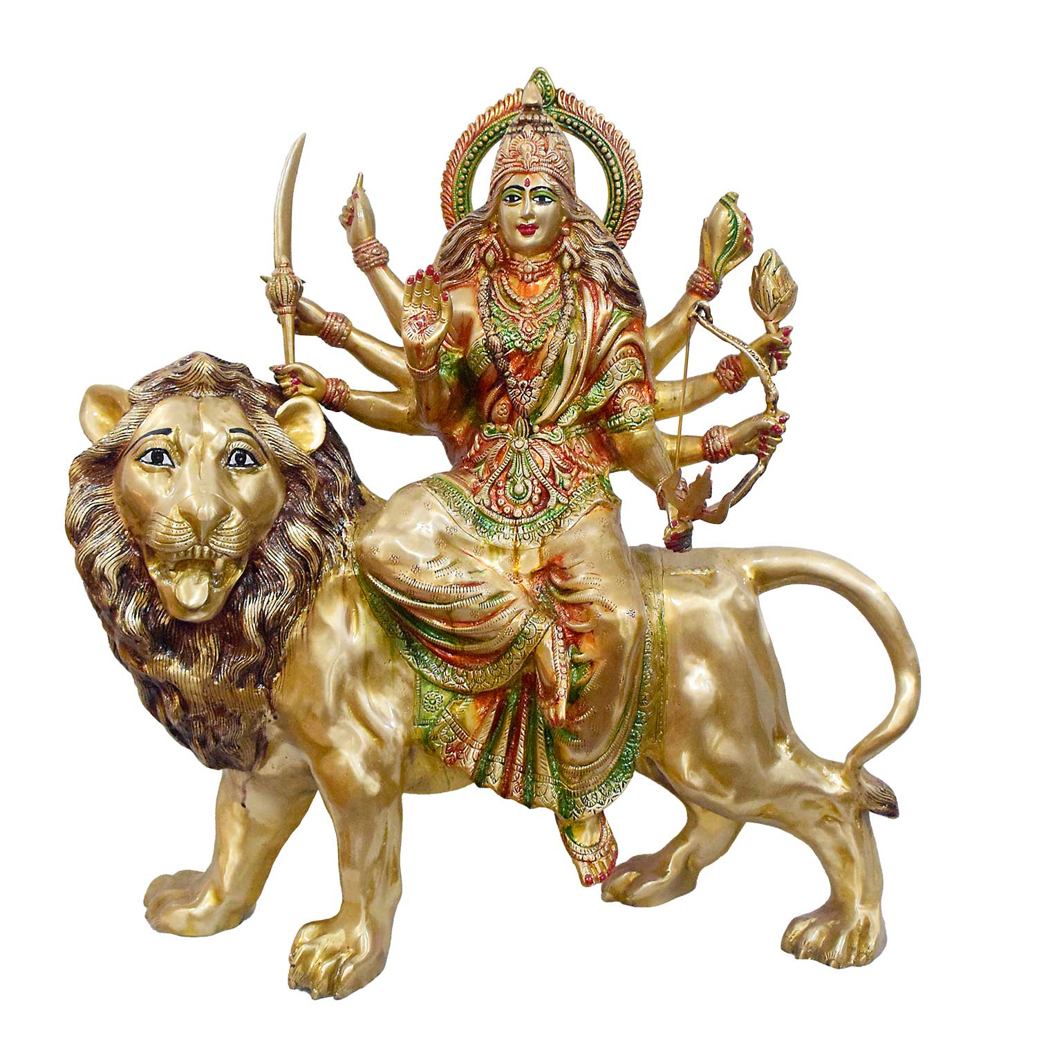 • Material: The Large Brass Durga Statue on the Lion is made from Pure Brass Virgin Material.