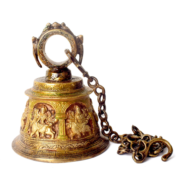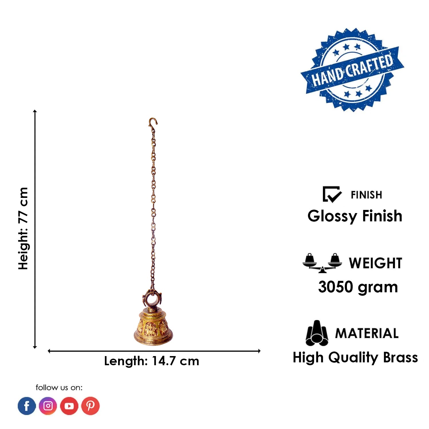 Ideal for both spiritual rituals and decorative purposes, this brass ghanti is suitable for home use, temples, yoga centers, meditation halls, spiritual events, and festive ceremonies. Its crisp and clear tone is perfect for chanting mantras, performing aartis, and signaling the beginning or end of a ritual. It can also serve as a meditative tool to help you focus and align with divine energies. The hanging brass bell options in our collection are perfect for temple entrances or pooja room doors, adding a divine touch to your décor.