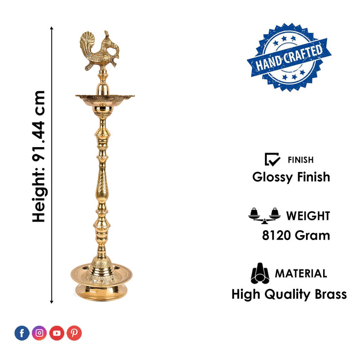 • Item Name: Brass Kerala Peacock Samai Deepam Inauguration Lamp 36 Inch