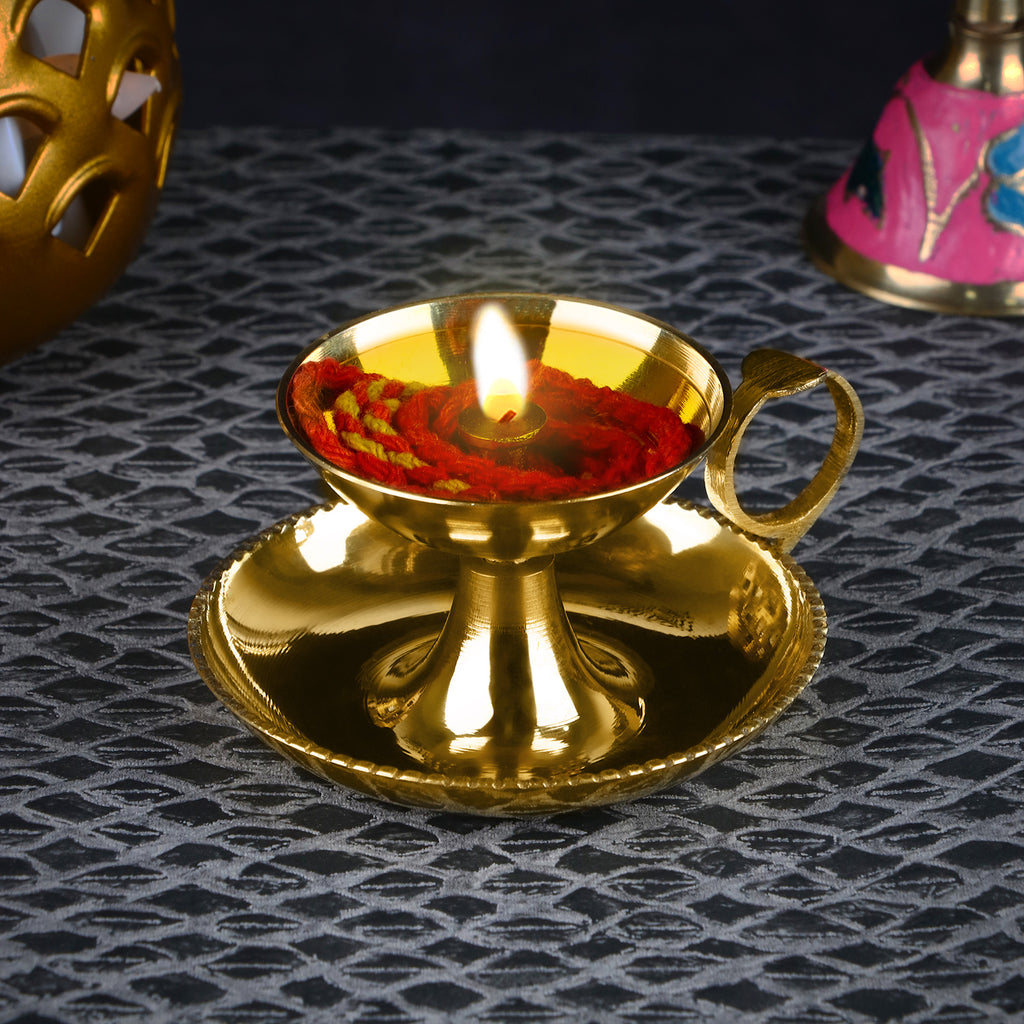 Inspired by the grandeur of the Mahabharata era, this diya lamp becomes a captivating conversation piece, reflecting the timeless beauty of ancient Indian art and mythology. Its brass construction ensures durability, making it a cherished item that will stand the test of time, passing down the legacy to generations.