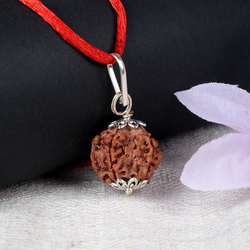 Buy 5 Mukhi Rudraksha Pendant with Designed Silver Cap | Satvikstore.in – satvikstore.in