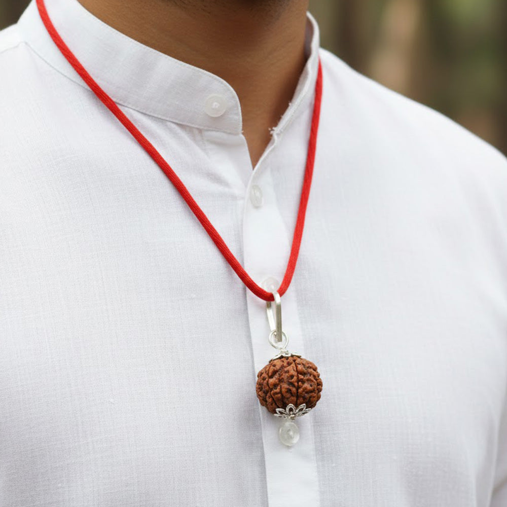 Known as the most commonly worn Rudraksha, the Panch Mukhi Rudraksha promotes peace of mind, clarity of thought, and emotional balance. Wearing this pendant helps calm stress, purify negative energies, and support spiritual growth while its stylish silver cap adds durability and devotional appeal. Suitable for men and women, it blends powerful spiritual benefits with refined design for everyday use.
