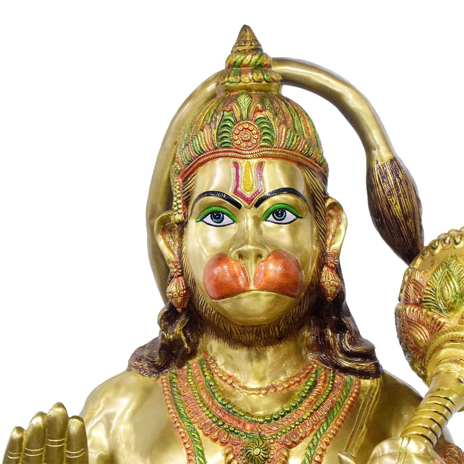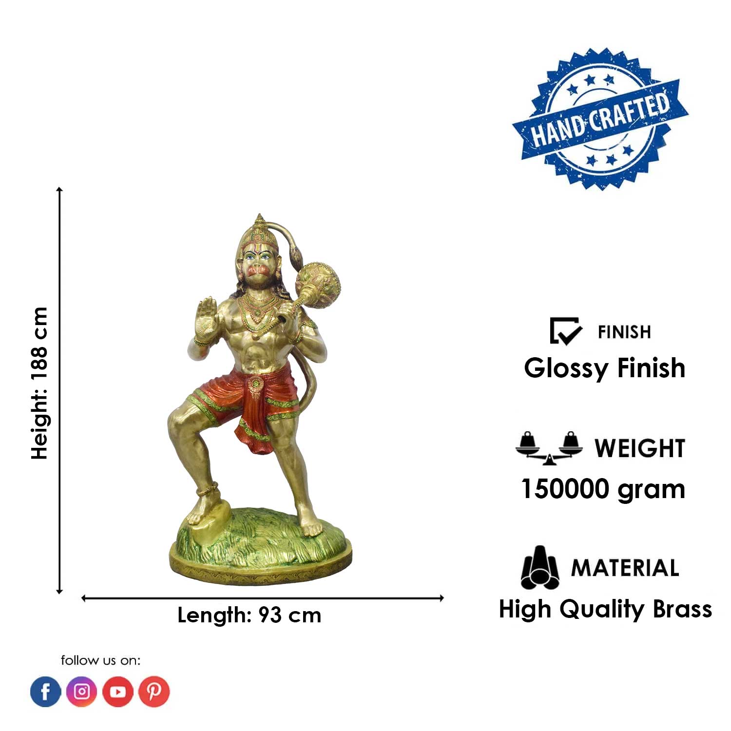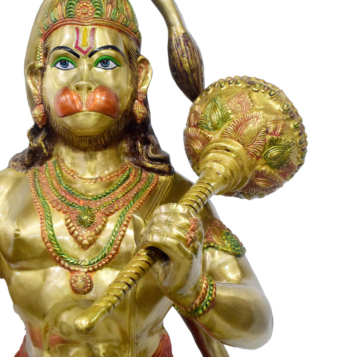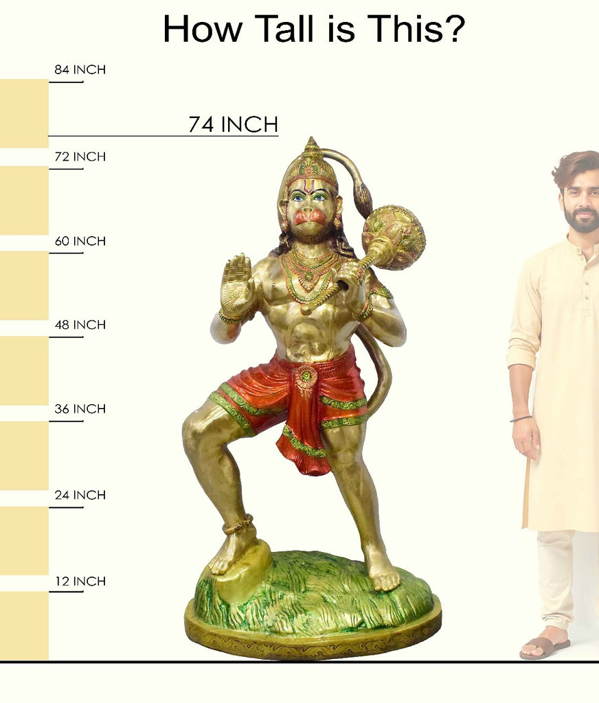 •  About the Product: 74 Inch Brass Hanuman Statue in Dynamic Pose - Holding Gada