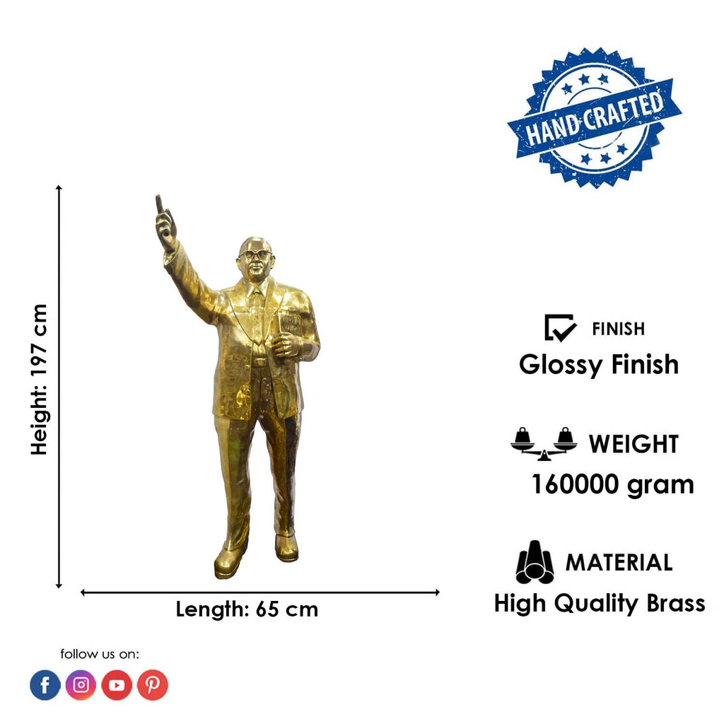 • Material: The Brass  Monumental Brass Dr. Bhimrao Ramji Ambedkar Statue is made from Pure Brass Virgin Material.