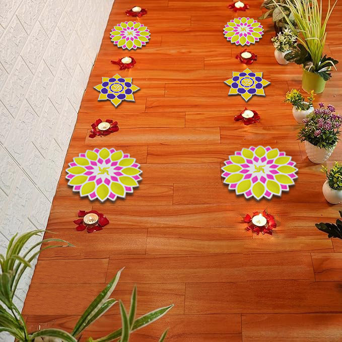 • Durable Materials: Crafted from wooden tools, the mat is built to last, ensuring you can use it for many Diwalis to come. Endless Design Possibilities: Explore an array of designs, from traditional kolam patterns to modern floral and border designs, with our versatile stencils.