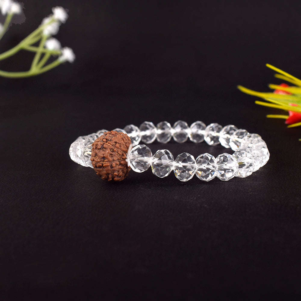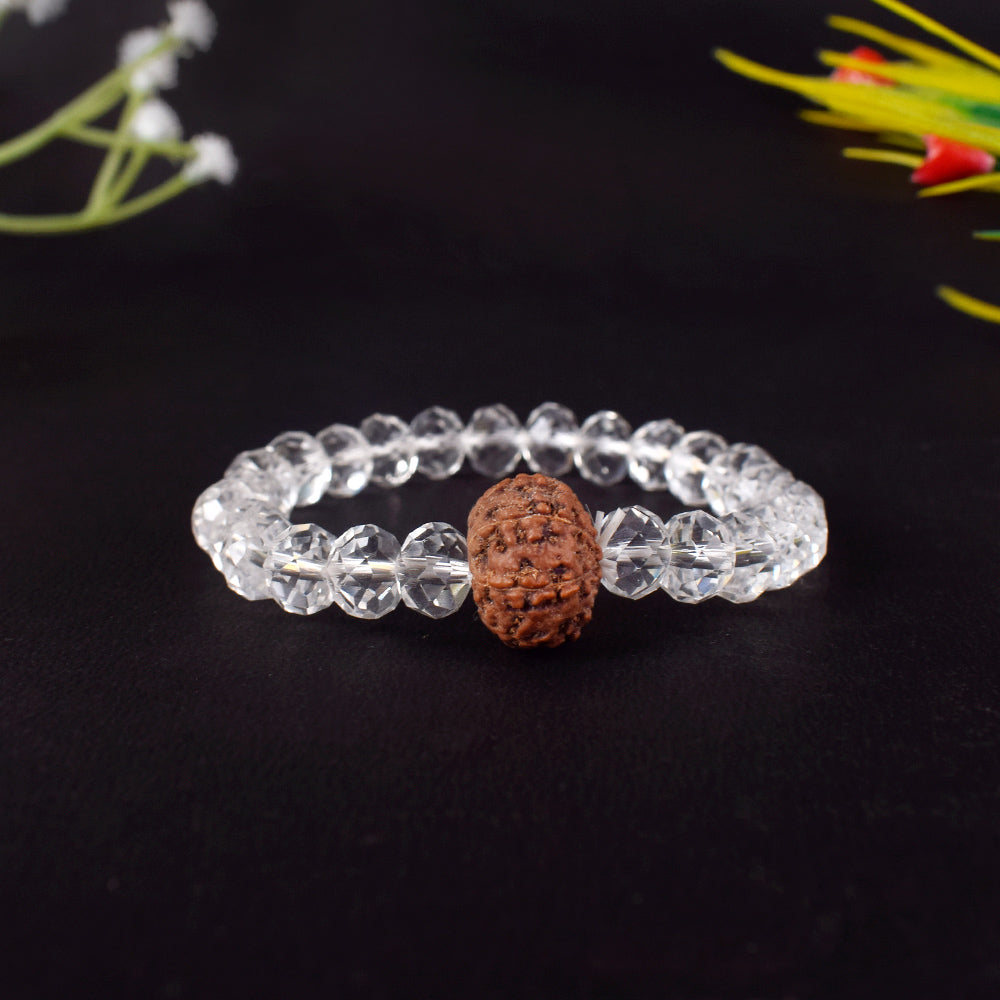 • Item Name: 8 Mukhi Rudraksha & Sphatik Bead Bracelet for Wisdom and Stability