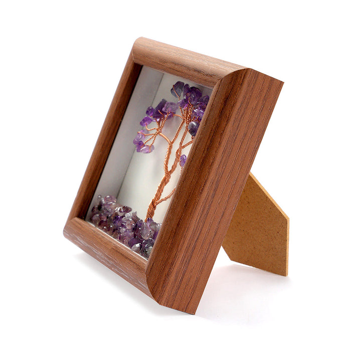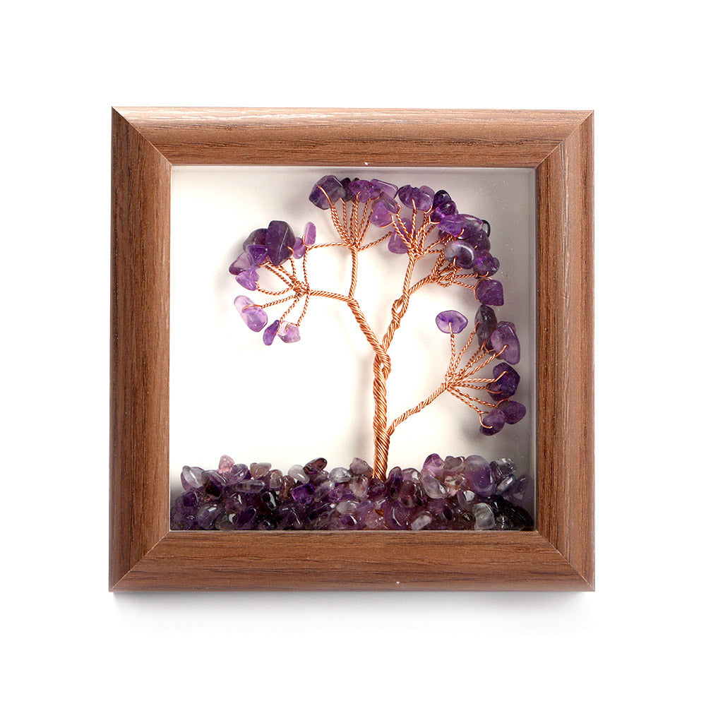 Amethyst is known as the stone of calm and spiritual awareness, believed to reduce stress, enhance intuition, and promote mental clarity. Displaying this tree frame in your home or office helps create a serene environment while adding an elegant spiritual accent to your décor.