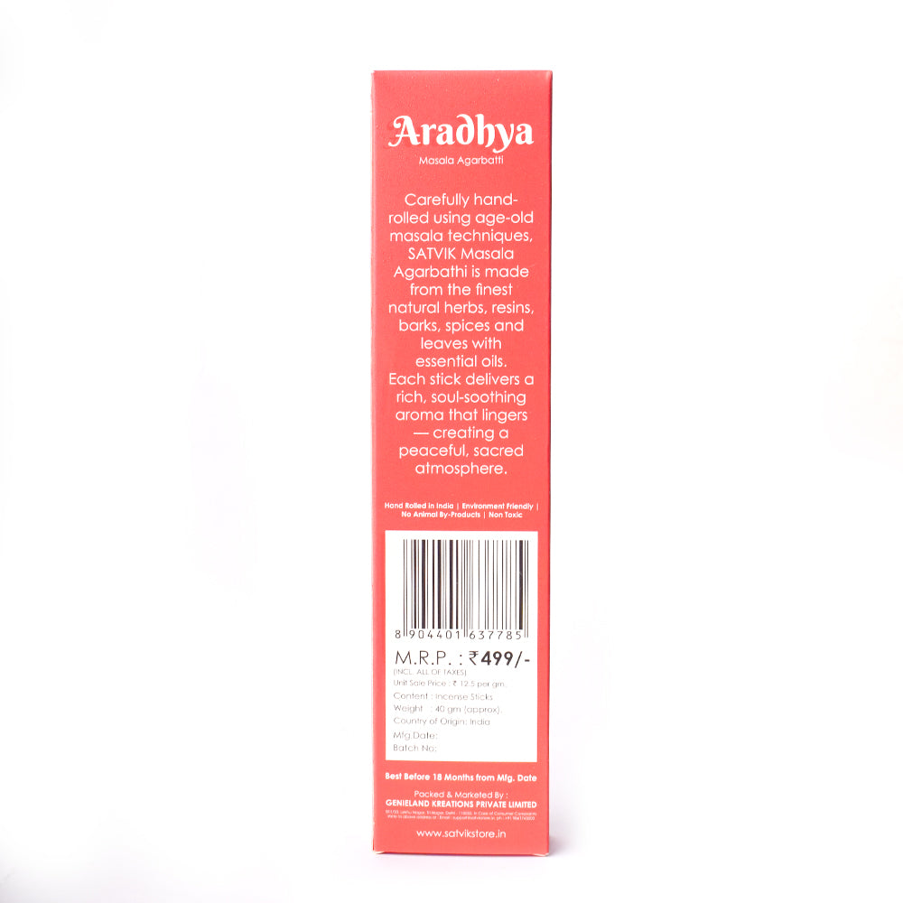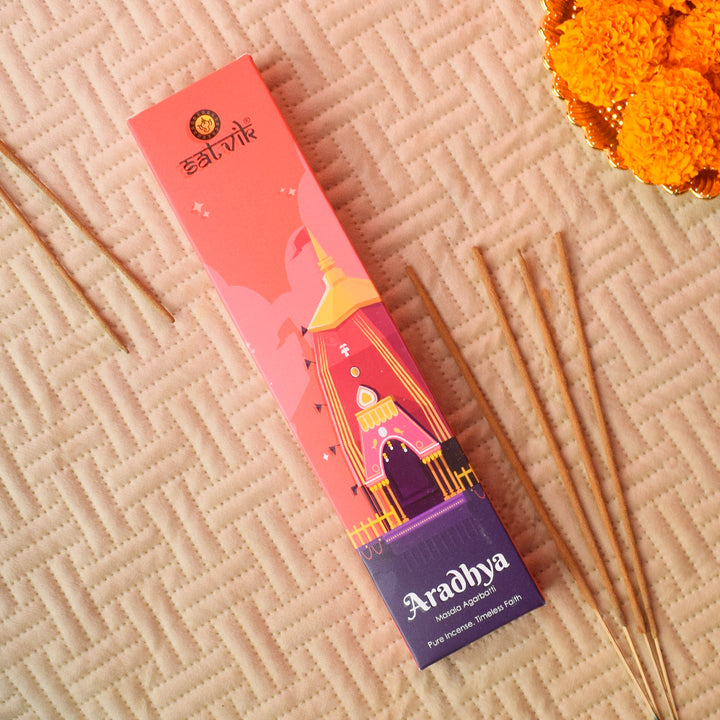Aradhya incense sticks | Pure masala agarbatti | Handcrafted pooja incense | Natural masala incense | Spiritual fragrance sticks | Aradhya agarbatti for rituals | Meditation incense sticks | Herbal incense sticks | Devotional masala dhoop | Premium incense for worship |