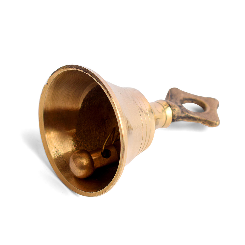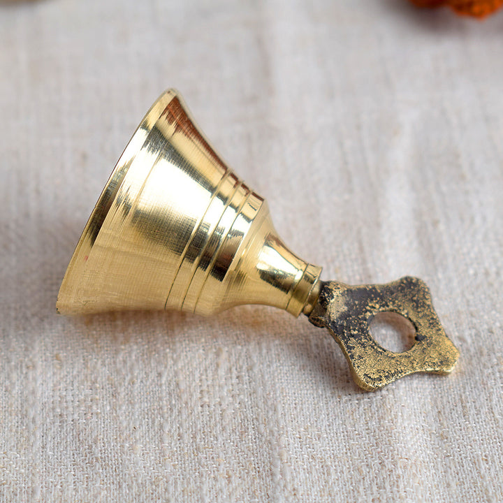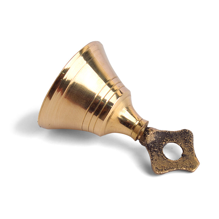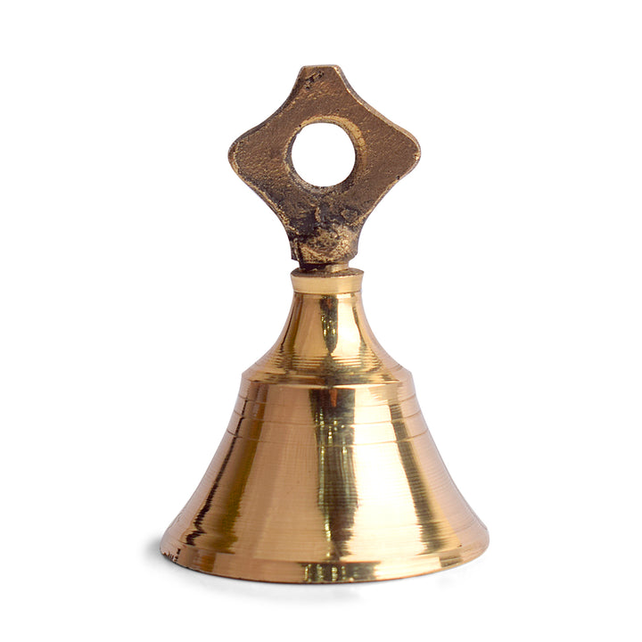 Sacred pooja bell | Brass temple bell | Traditional Indian pooja item | Devotional ghanti | Echo bell for rituals | Sacred sound bell | Handheld brass bell | Pooja bell for mandir | Hindu spiritual accessories |Β Puja bell | Brass puja bell | Ghanti for temple | Hindu prayer bell | Aarti bell | Spiritual pooja bell |