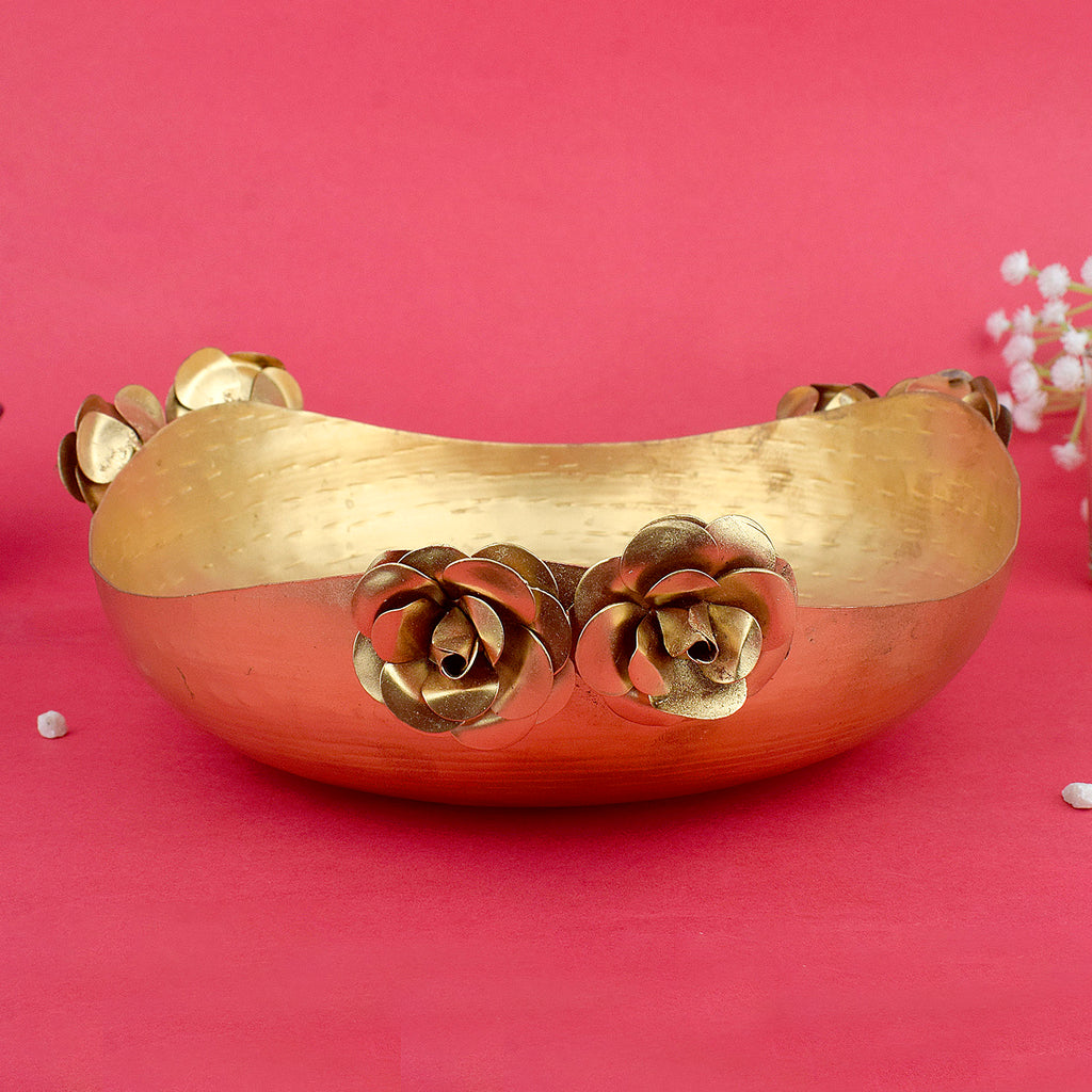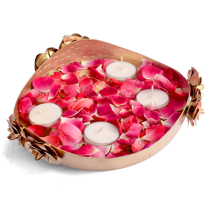 Blossom gold urli | Elegant gold urli | Decorative gold urli | Urli for home decor | Gold flower urli | Spiritual gold urli | Pooja room urli | Festive gold urli | Decorative floating diya urli |Β