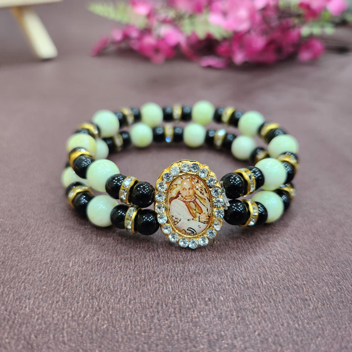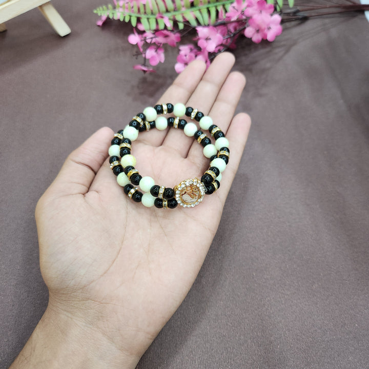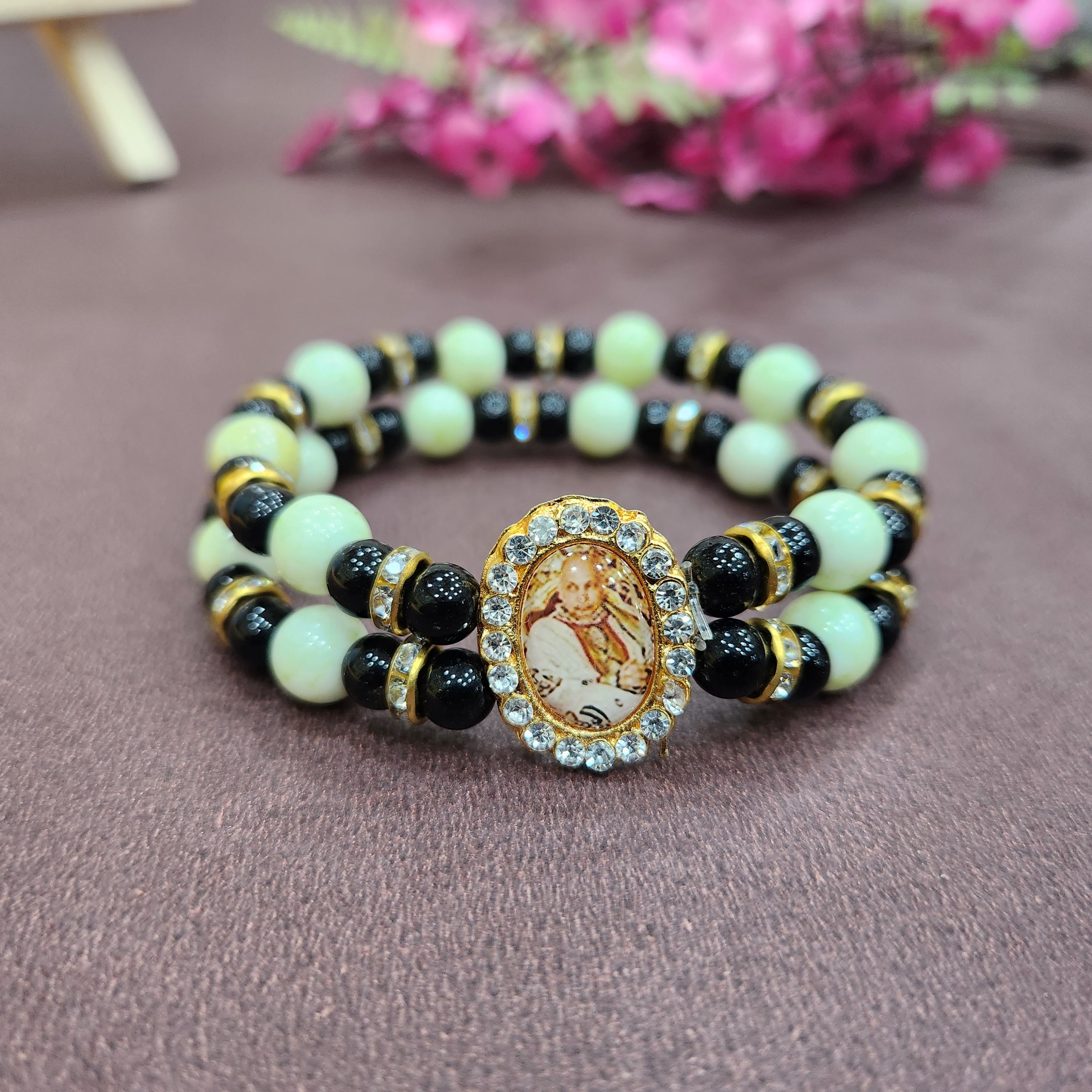 Black And Neon Green Bracelet with Jai Guruji Swaroop Handmade Bracelets for Men and Women