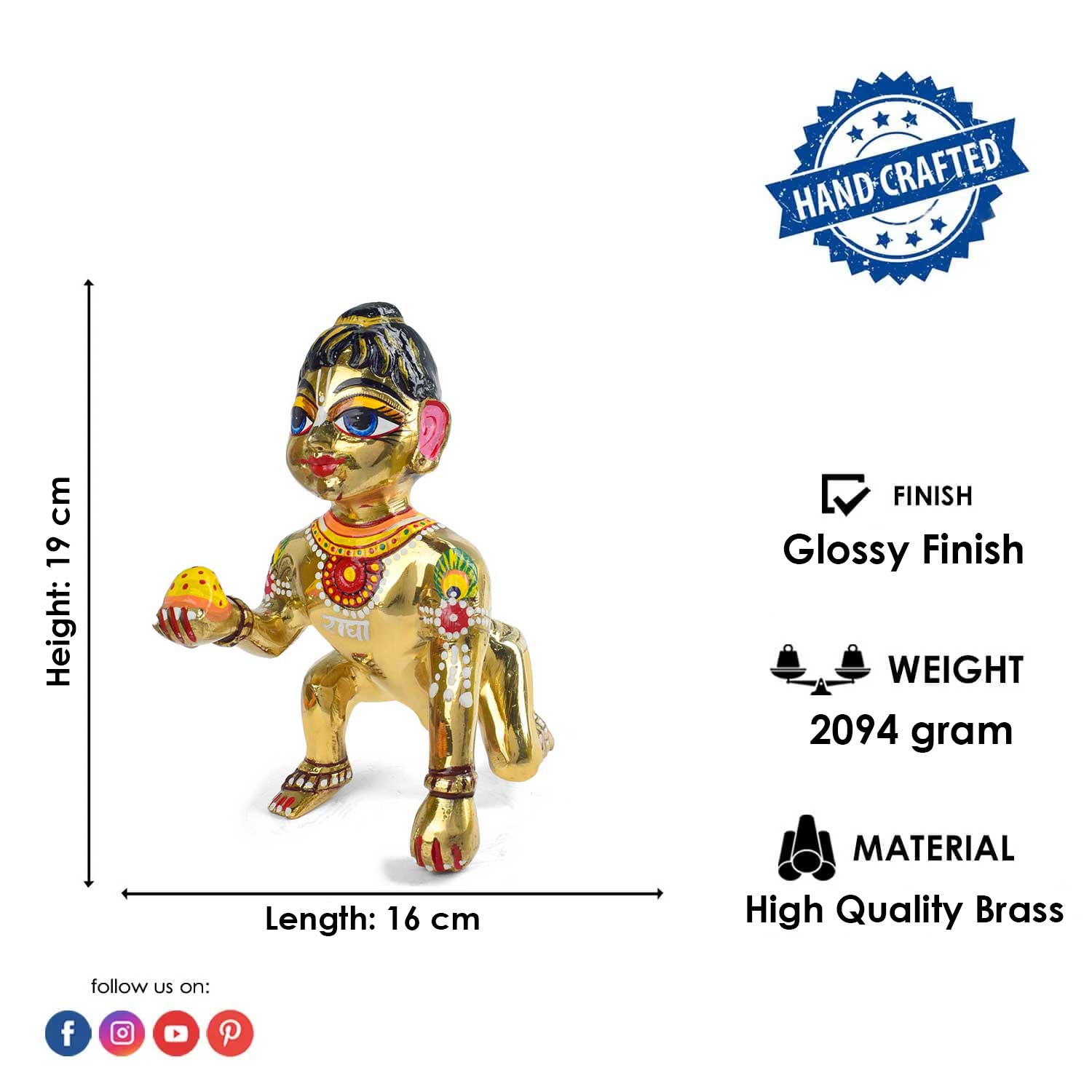Material: The Laddu Gopal Idol is made from High Quality Brass Material.