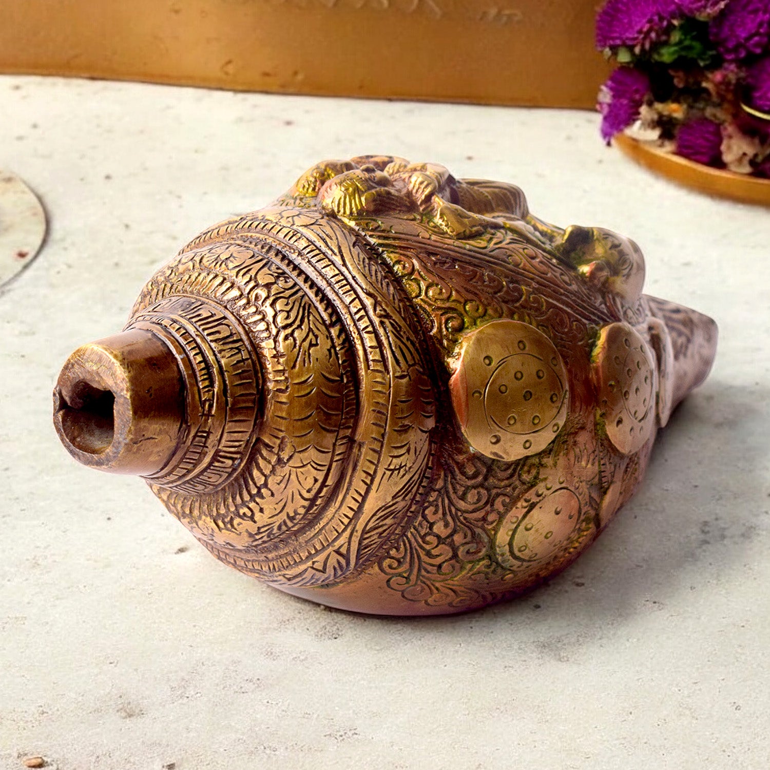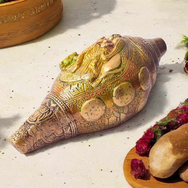 • Material: The Shankh is made from high quality Brass Material