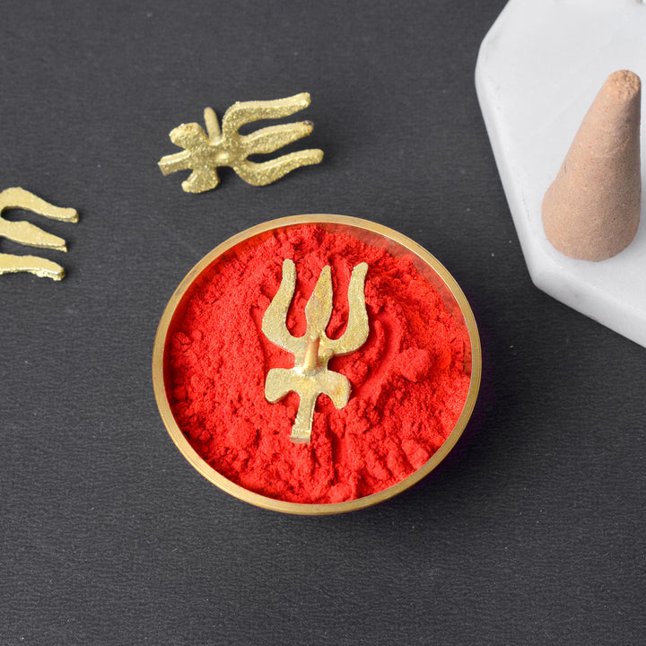 Buy Online | Brass Trishul with Damru Tilak Stamp | Satvikstore.in – satvikstore.in