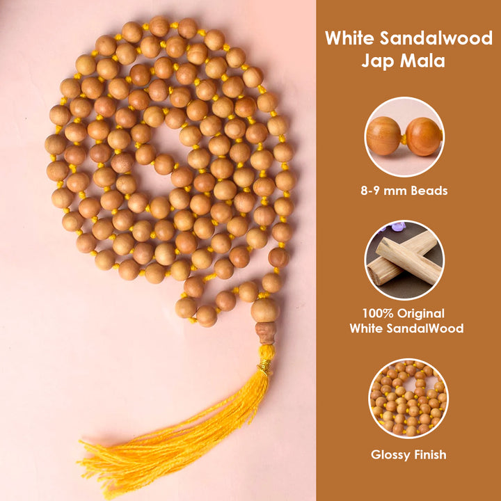 White Sandalwood Jap Mala | Original White Sandalwood Mala | Mala for Vishnu and Lakshmi Jaap | Pure Chandan Mala for Puja | Natural White Sandalwood Prayer Beads |Β