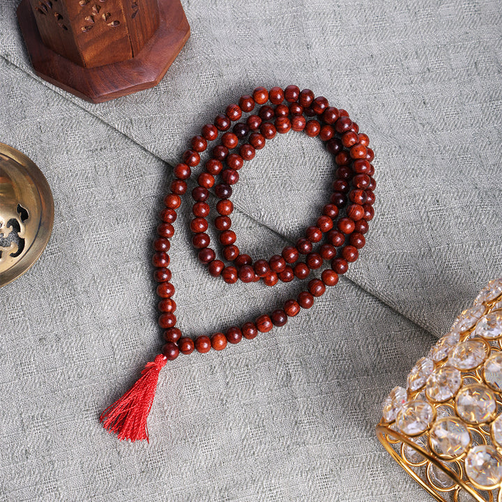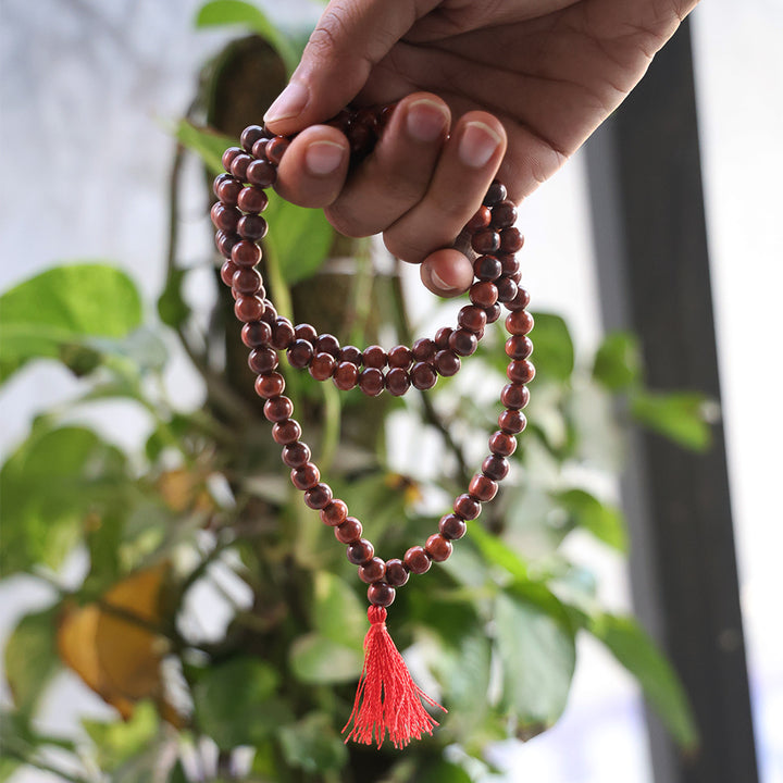 Red Sandalwood Jap Mala | Chandan Mala for Meditation | Natural Red Sandalwood Rosary | Handmade Chandan Beads Mala | Sandalwood Mala for Prayer | Mala for Hanuman Mantra |