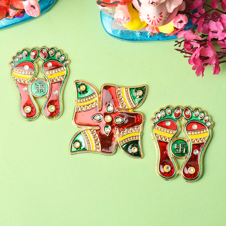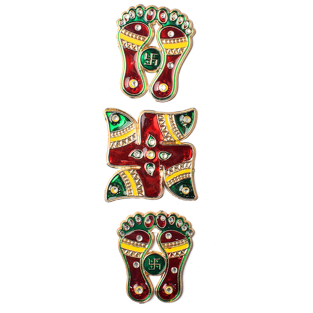 • Item Name: Charanpaduka with Swastik Sticker Ensemble