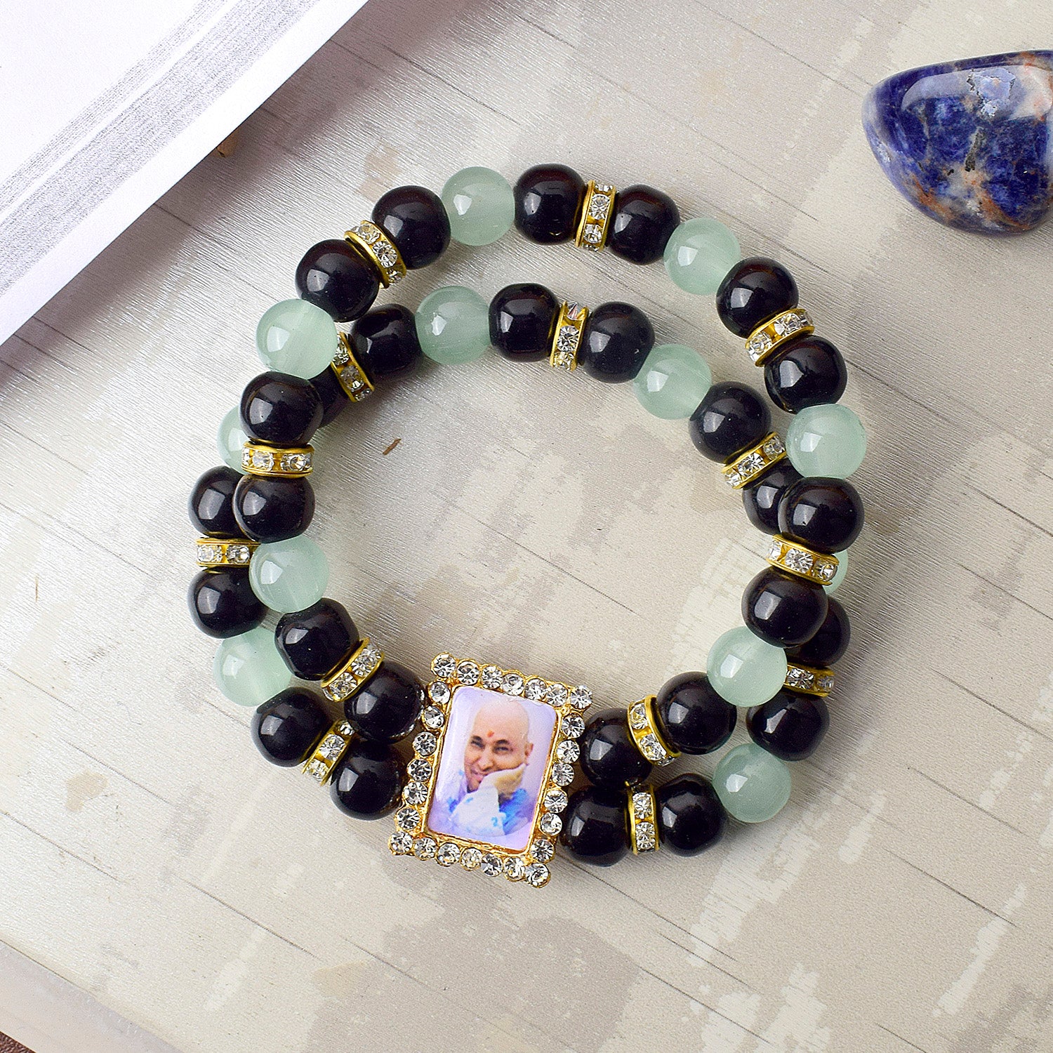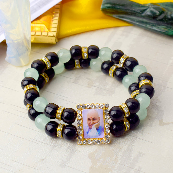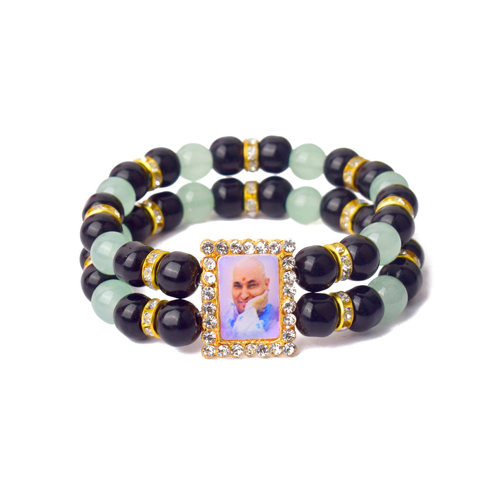 Our Guruji bracelet is a tangible symbol of divine connection. Crafted with care and reverence, it is designed to be worn close to your heart, serving as a constant reminder of Guruji's presence. The bracelet is adorned with sacred symbols and gemstones that hold spiritual significance, channeling positive energy and protection.