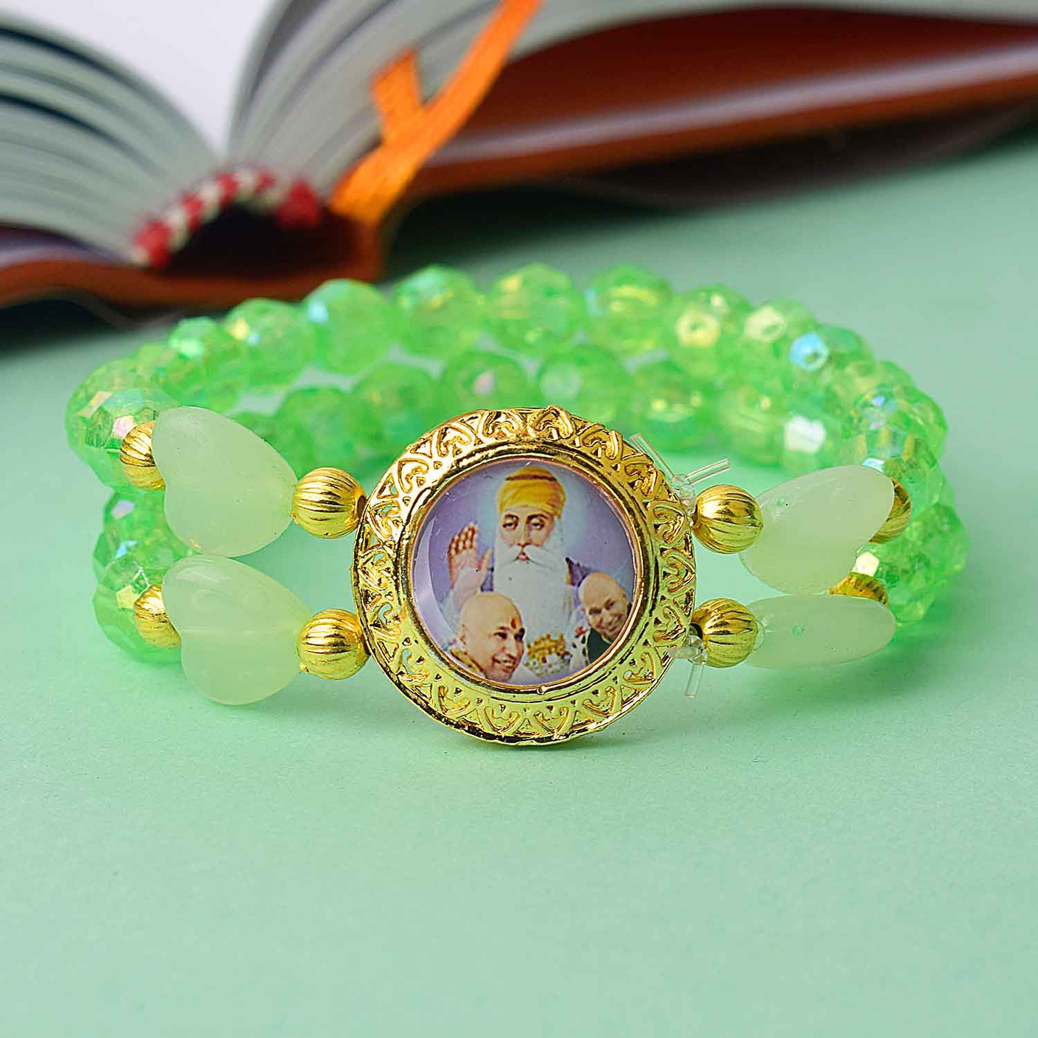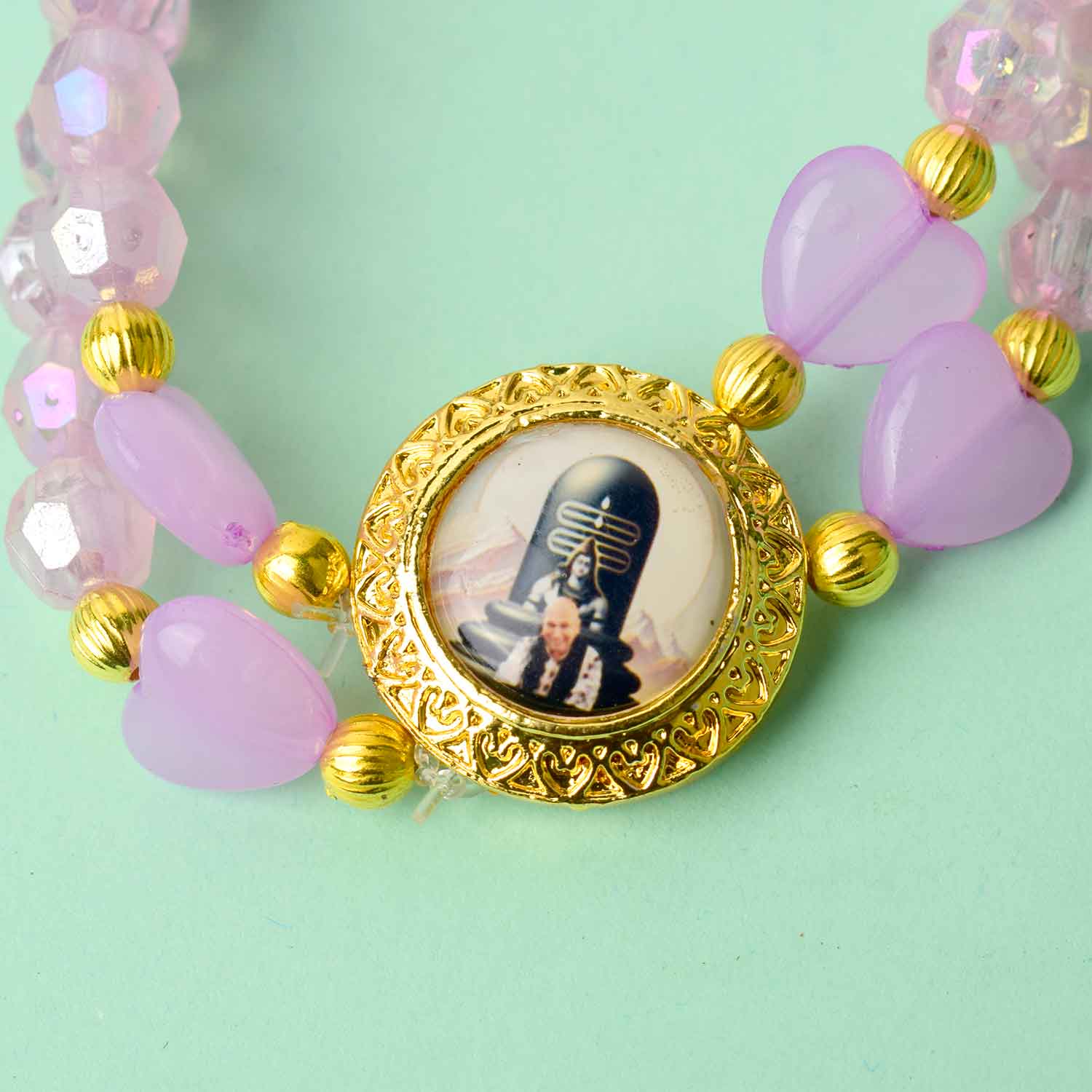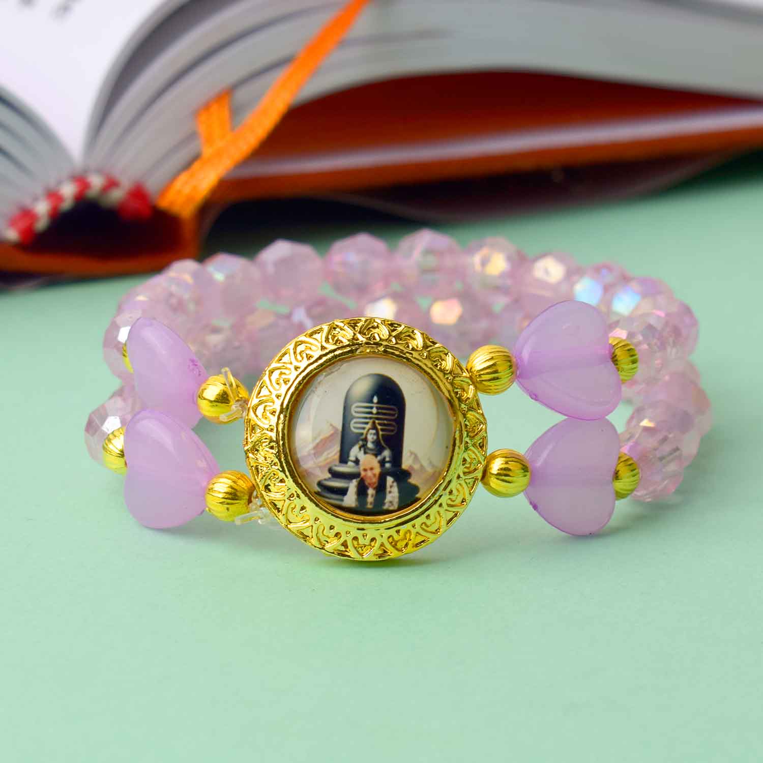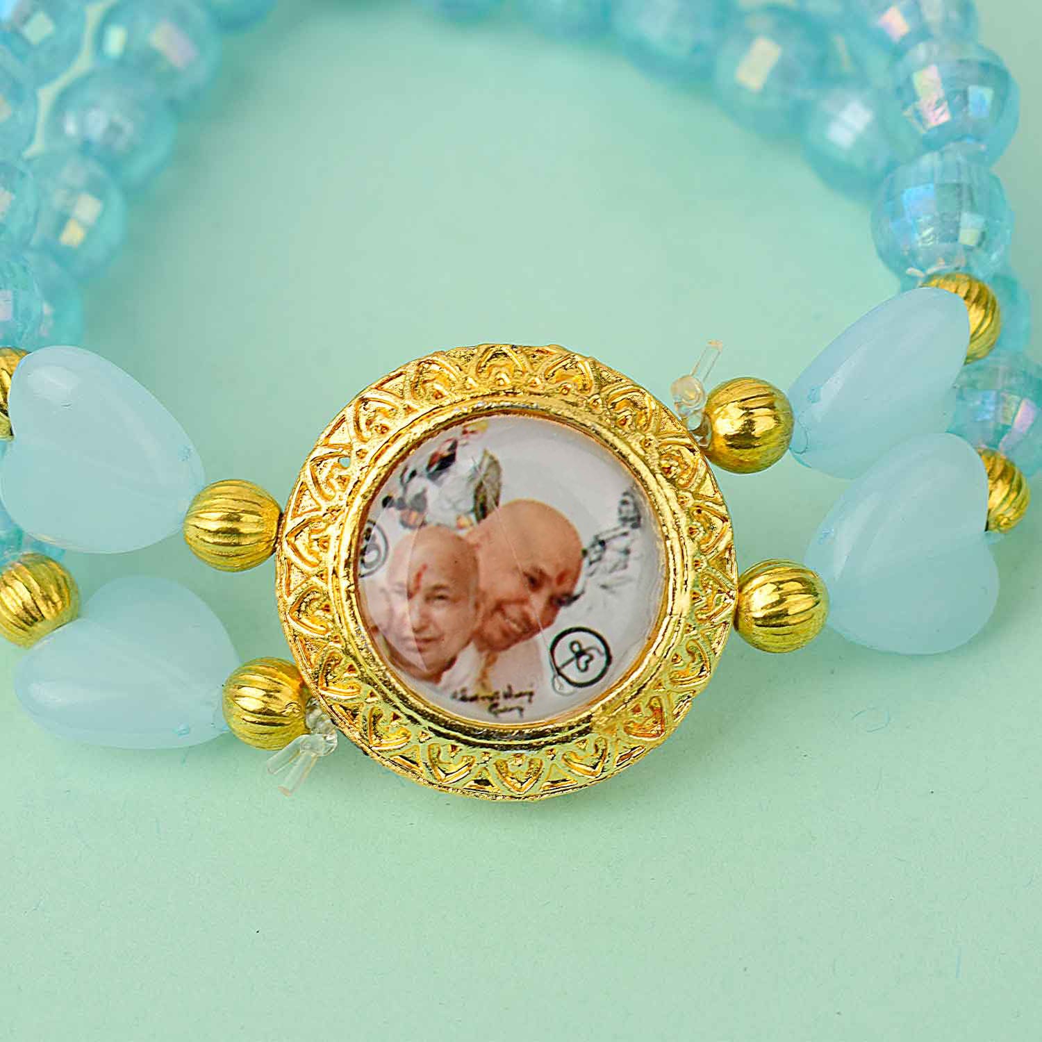 guruji bracelet with heart bead | guruji swaroop bracelet | heart center guruji bracelet | colored bead guruji bracelet | spiritual charm bracelet | handmade guruji bracelet | pooja return gift bracelet | daily wear spiritual bracelet | guruji bracelet for men | guruji bracelet for women | satvikstore bracelet | spiritual gift idea