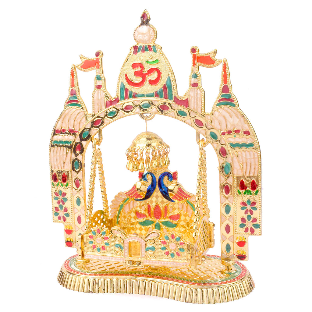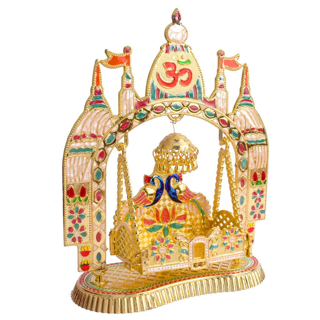 Item Name: Charming Temple-Style Jhula for Laddu Gopal – Golden Finish