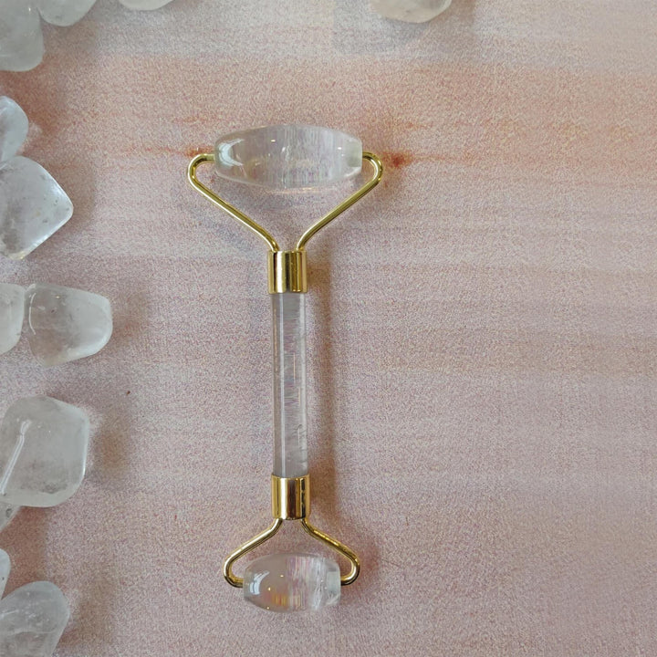 Clear Quartz Face Roller with Gua Sha – Radiance & Clarity Boost