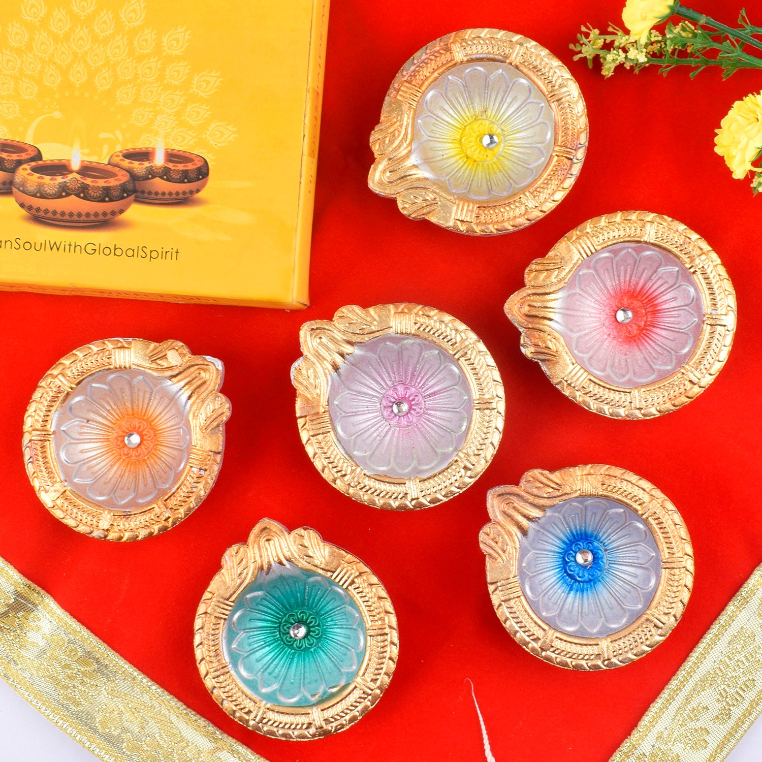 Crafted Light Stunning Clay Diyas for Diwali Celebrations Set of 6