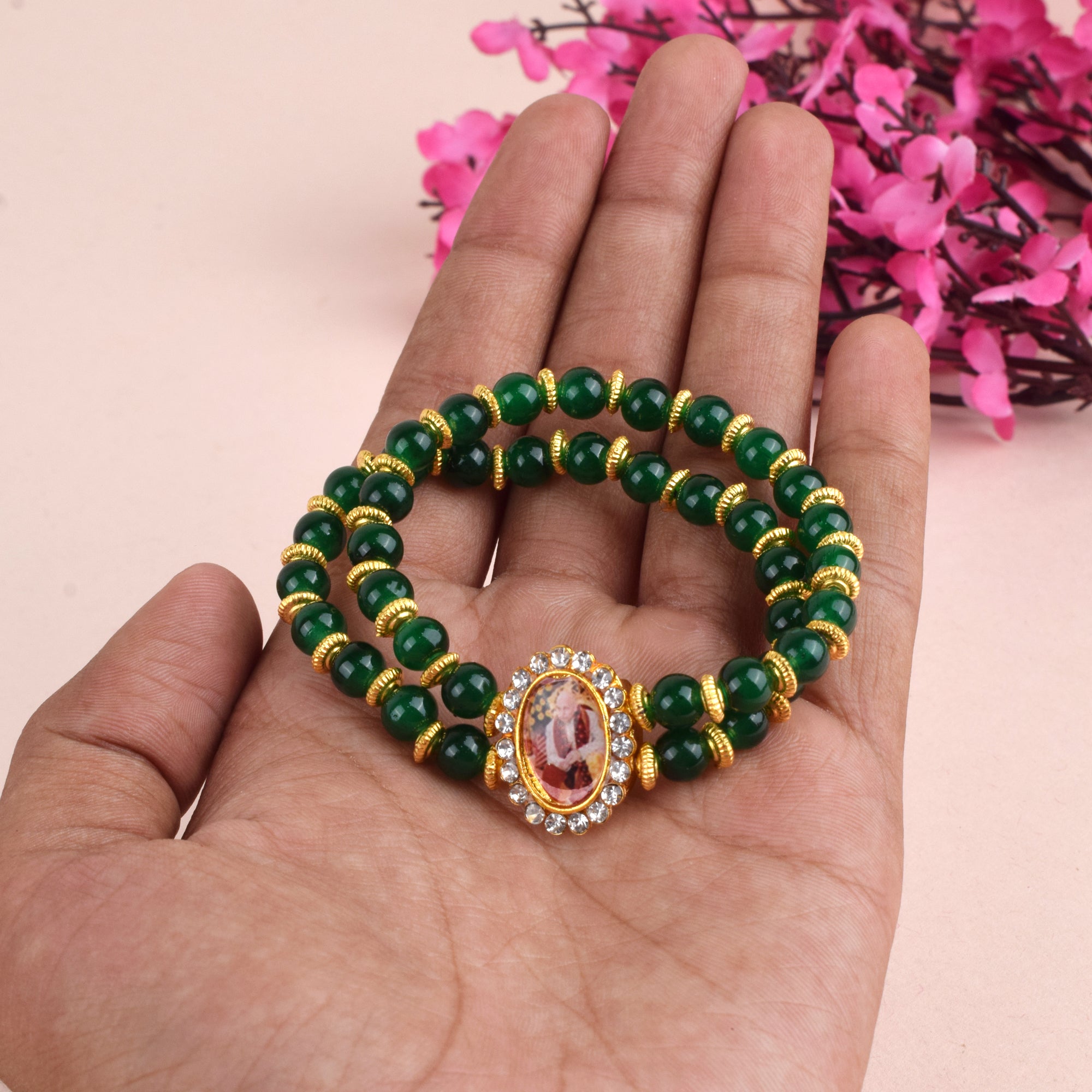 Buy Online Guruji Swaroop Braceket: Dark Green Beaded | Satvikstore.in – satvikstore.in