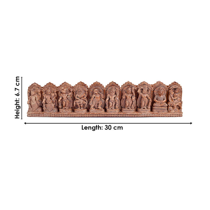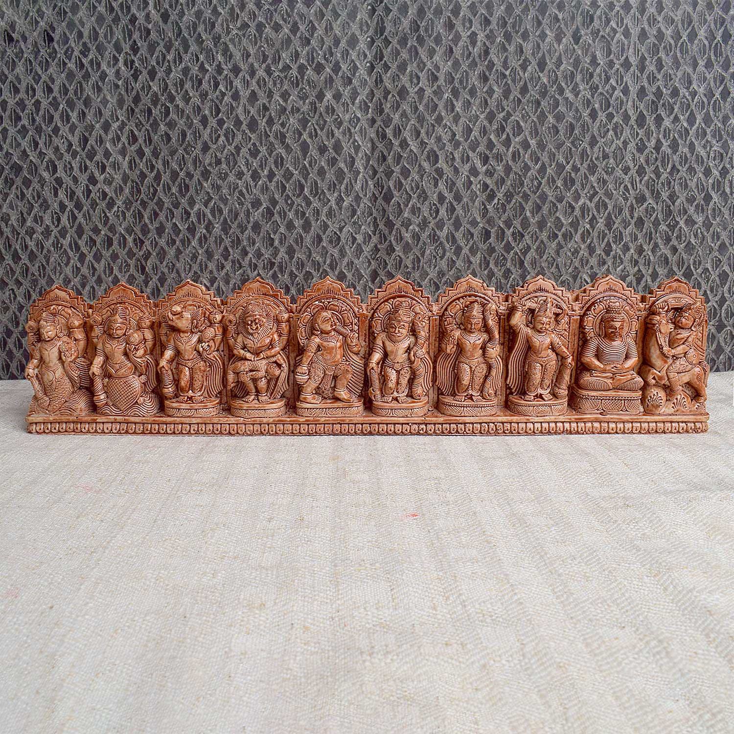Item Name: Dasavatharam Wall Decor. Lord Vishnu Avatars In Wood Carving