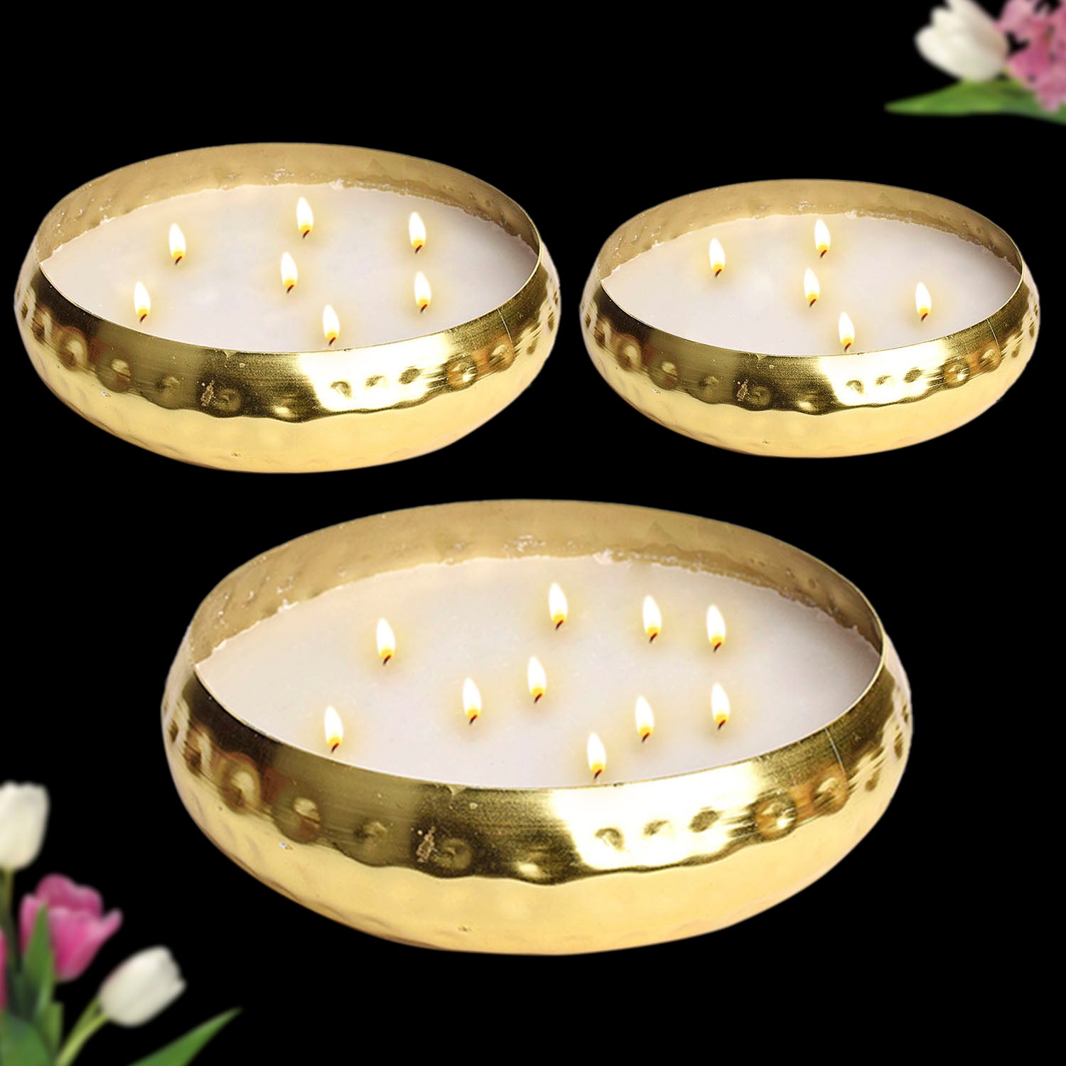 • Item Name: Decorative Brass Scented Candle Urli for Elegant Indian Decor