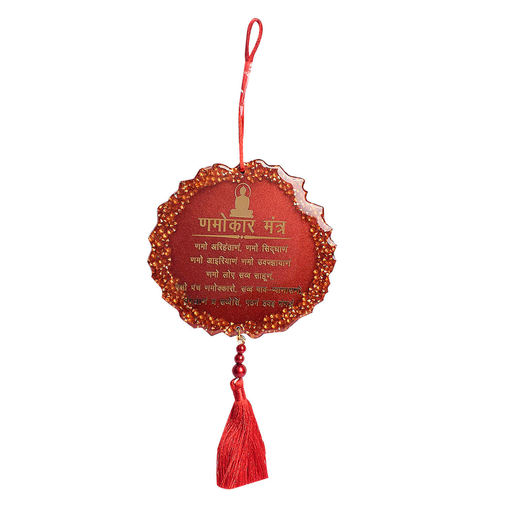 Decorative Epoxy/Resin Gayatri Mantra Red Frame Car/Wall Hanging