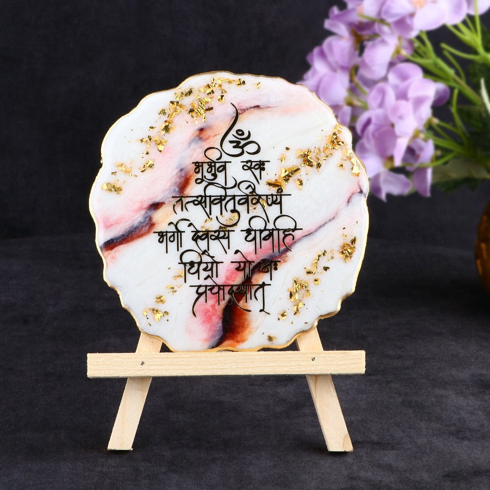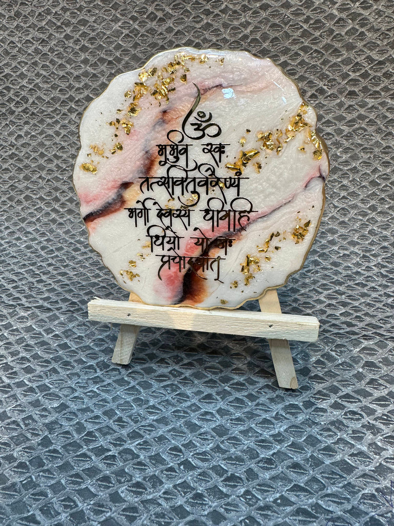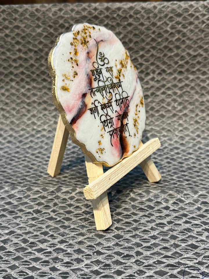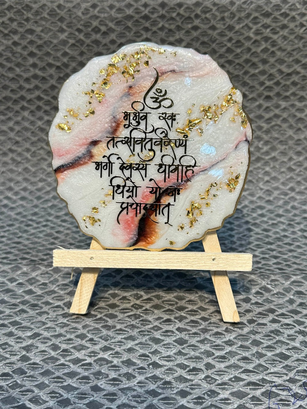 Decorative Gayatri Mantra Frame With Stand Made With Epoxy
