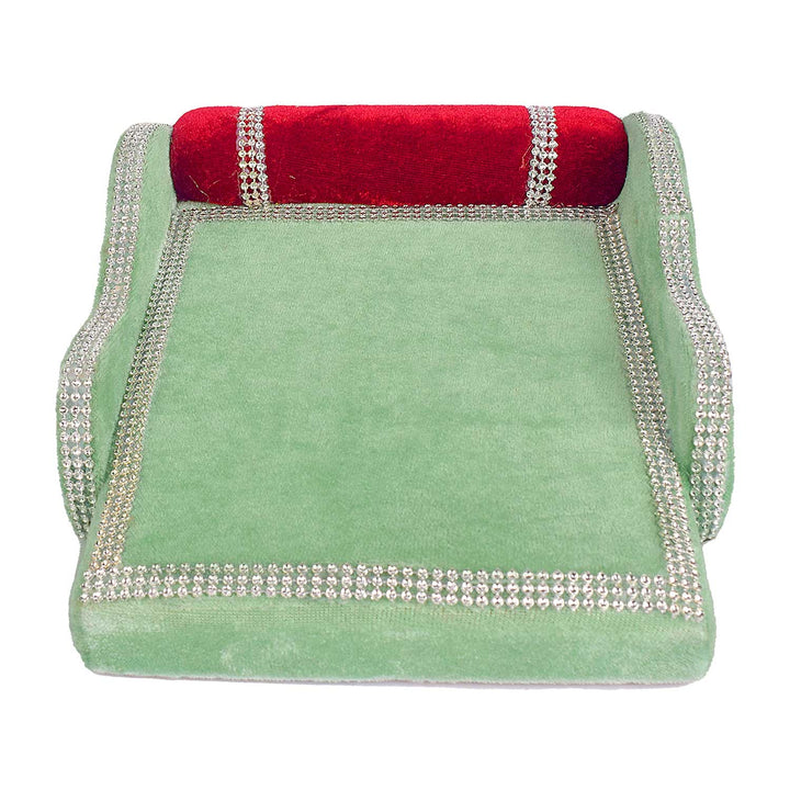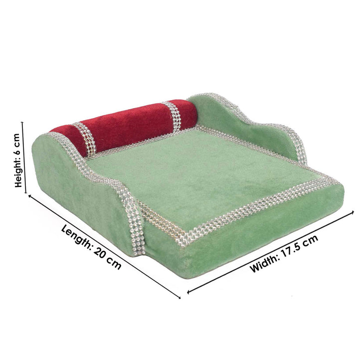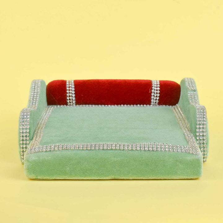 • Item Name: Devotional Bed – Green Velvet for Laddu Gopal